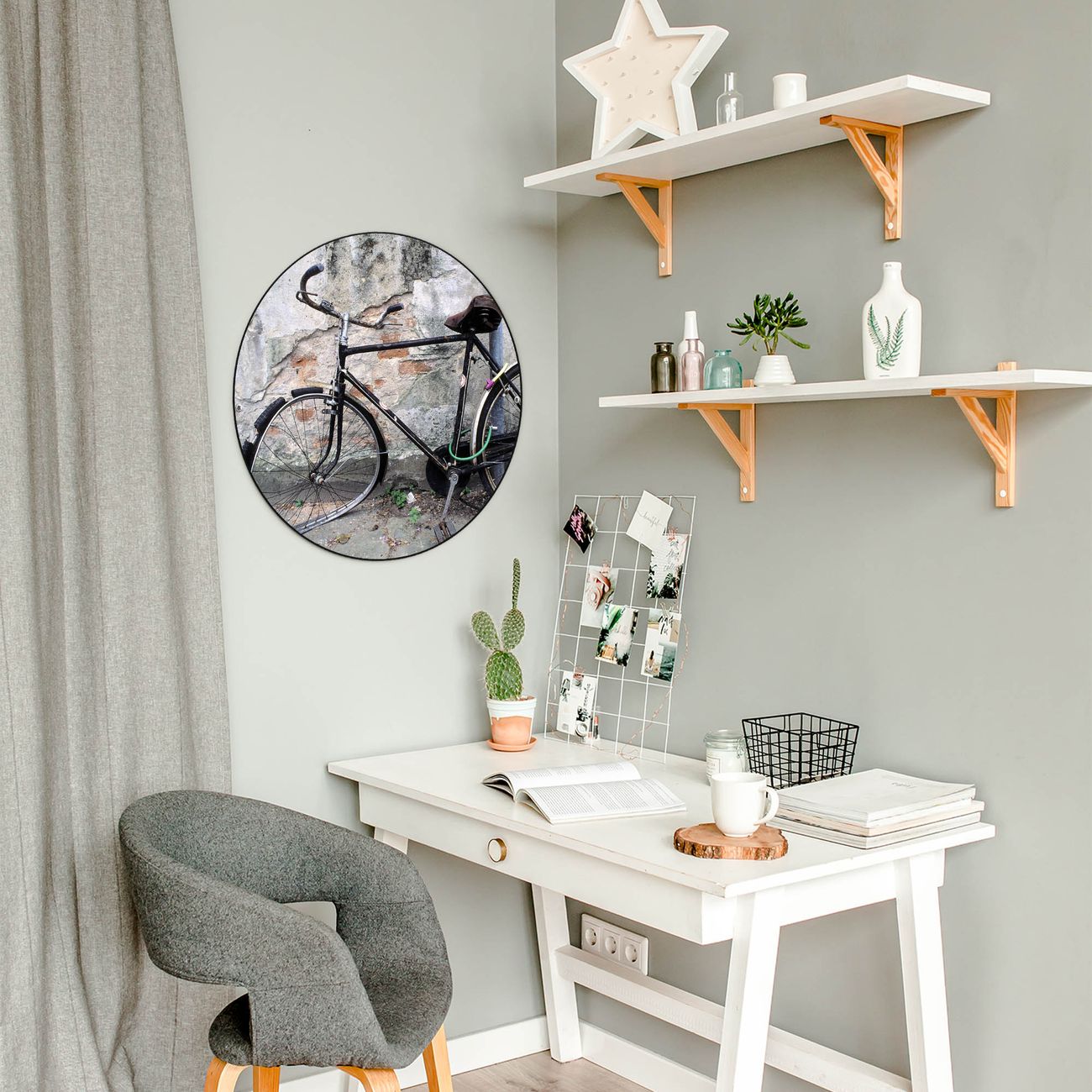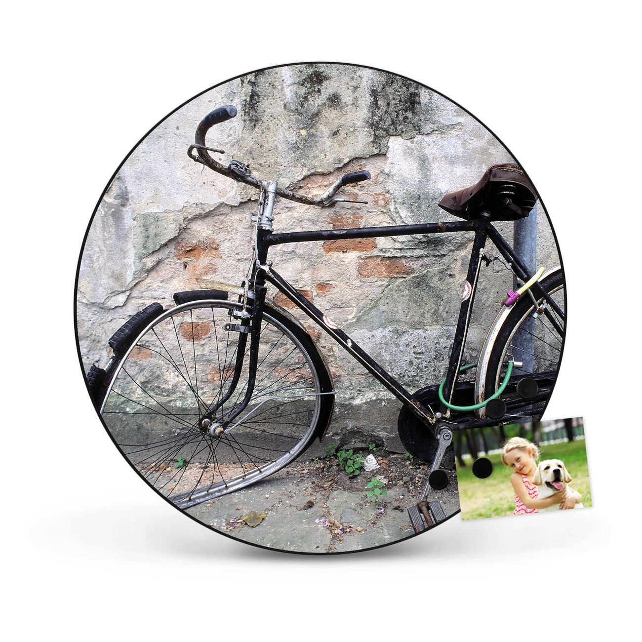 FUNKTION / DESIGN Die banjado Magnettafel mit dem Motiv Motiv Nostalgie Rad bringt Ordnung in Ihr Zettelchaos. Fotos, Termine, Notizen oder Rezepte lassen Sich hier stilvoll mit Magneten ordnen, Sie behalten alles im Blick. Die Design Magnetwand ist beschreibbar und wieder abwischbar. Mit dieser Pinnwand haben Sie auch ohne Notizen und Magneten ein schönes Dekoelement. Das Format bietet Ihnen ausreichend Platz um alle wichtigen Informationen im Blick zu behalten. DETAILS / NUTZEN Die magnetische Metall Pinnwand besteht aus schwarz lackiertem Stahl. Sie hat einen Durchmesser von 47cm. Es befinden sich an den Seiten zwei vorgefertigte Löcher die eine schnelle und unkomplizierte Anbringung ermöglichen. Das Motiv ist mit einem seidenmatten Laminat versehen und schützt so zusätzlich vor Kratzern. Es halten alle handelsüblichen Magneten daran. Wir sind ein kleines Team aus dem Herzen von Sachsen. Wir fertigen alle Artikel von Hand für Sie an, Sie erhalten keine preiswerte Importware. Auf Wunsch können Sie auch Ihr eigenes Foto auf die Magnettafel aufbringen, schreiben Sie uns an.