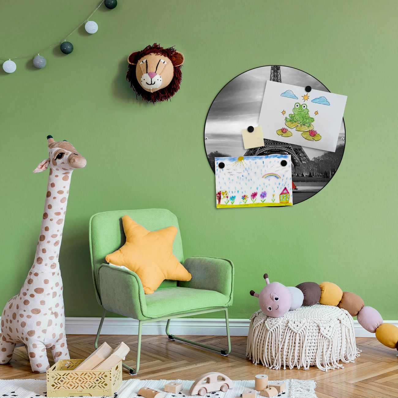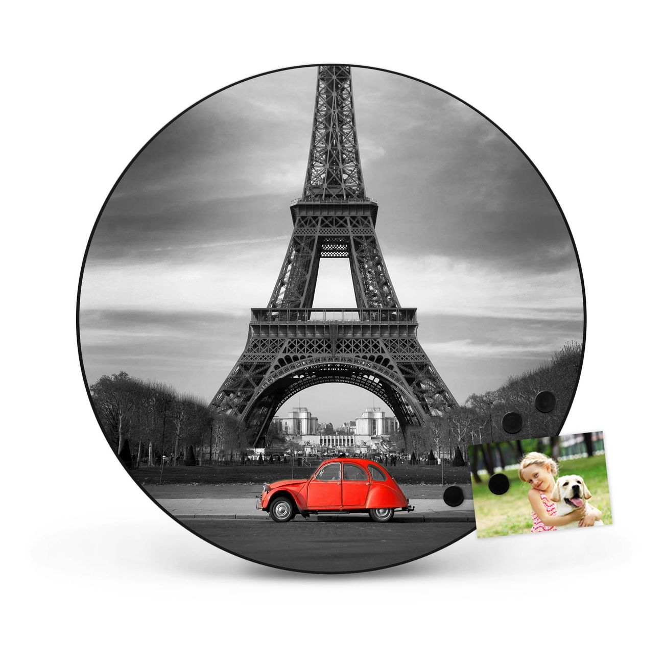 FUNKTION / DESIGN Die banjado Magnettafel mit dem Motiv Motiv Paris bringt Ordnung in Ihr Zettelchaos. Fotos, Termine, Notizen oder Rezepte lassen Sich hier stilvoll mit Magneten ordnen, Sie behalten alles im Blick. Die Design Magnetwand ist beschreibbar und wieder abwischbar. Mit dieser Pinnwand haben Sie auch ohne Notizen und Magneten ein schönes Dekoelement. Das Format bietet Ihnen ausreichend Platz um alle wichtigen Informationen im Blick zu behalten. DETAILS / NUTZEN Die magnetische Metall Pinnwand besteht aus schwarz lackiertem Stahl. Sie hat einen Durchmesser von 47cm. Es befinden sich an den Seiten zwei vorgefertigte Löcher die eine schnelle und unkomplizierte Anbringung ermöglichen. Das Motiv ist mit einem seidenmatten Laminat versehen und schützt so zusätzlich vor Kratzern. Es halten alle handelsüblichen Magneten daran. Wir sind ein kleines Team aus dem Herzen von Sachsen. Wir fertigen alle Artikel von Hand für Sie an, Sie erhalten keine preiswerte Importware. Auf Wunsch können Sie auch Ihr eigenes Foto auf die Magnettafel aufbringen, schreiben Sie uns an.