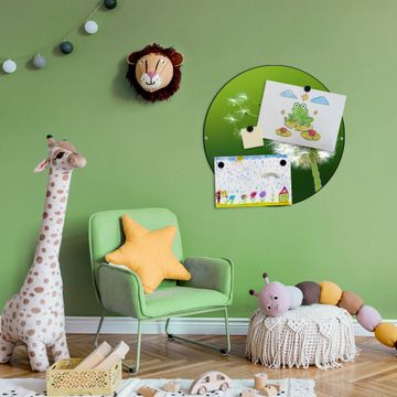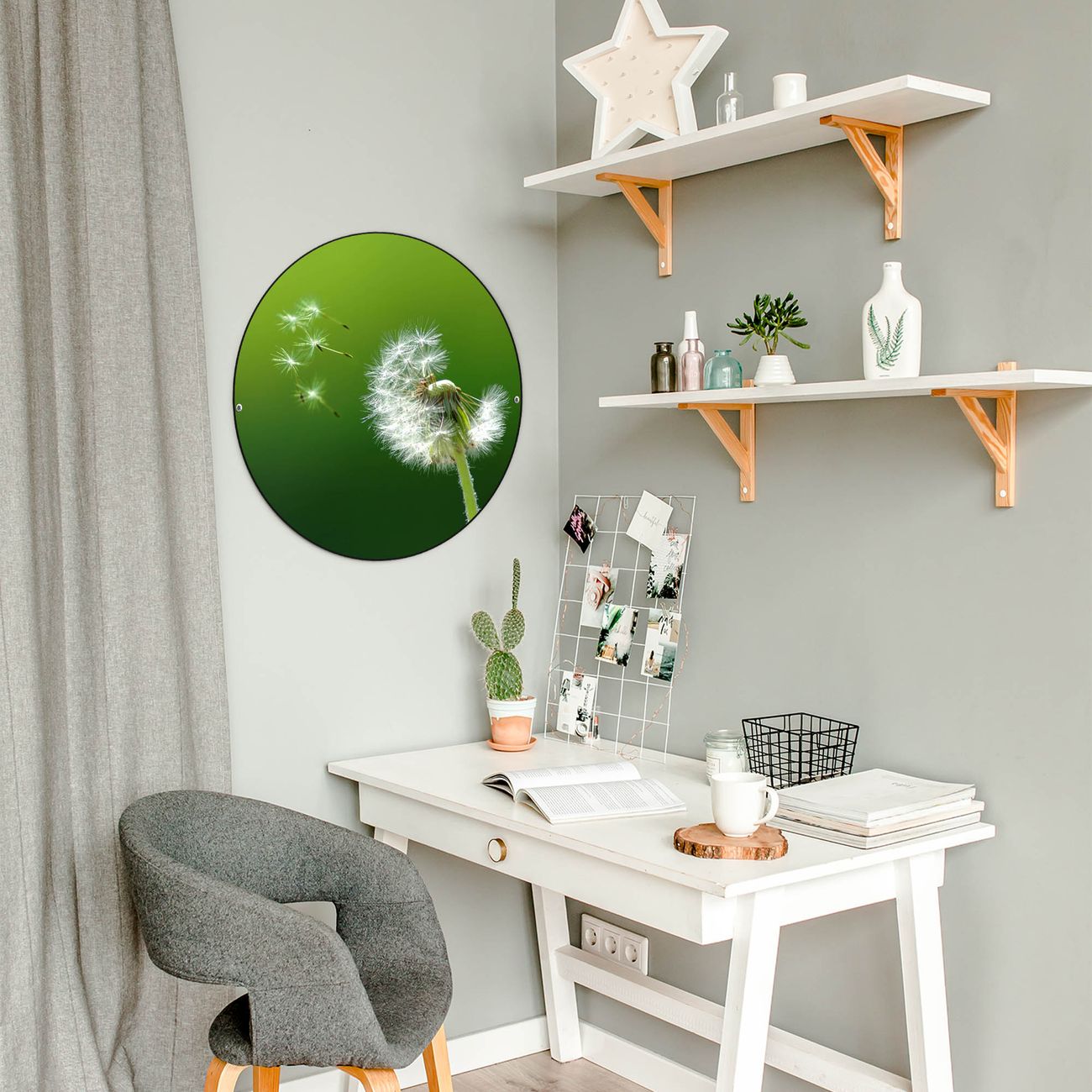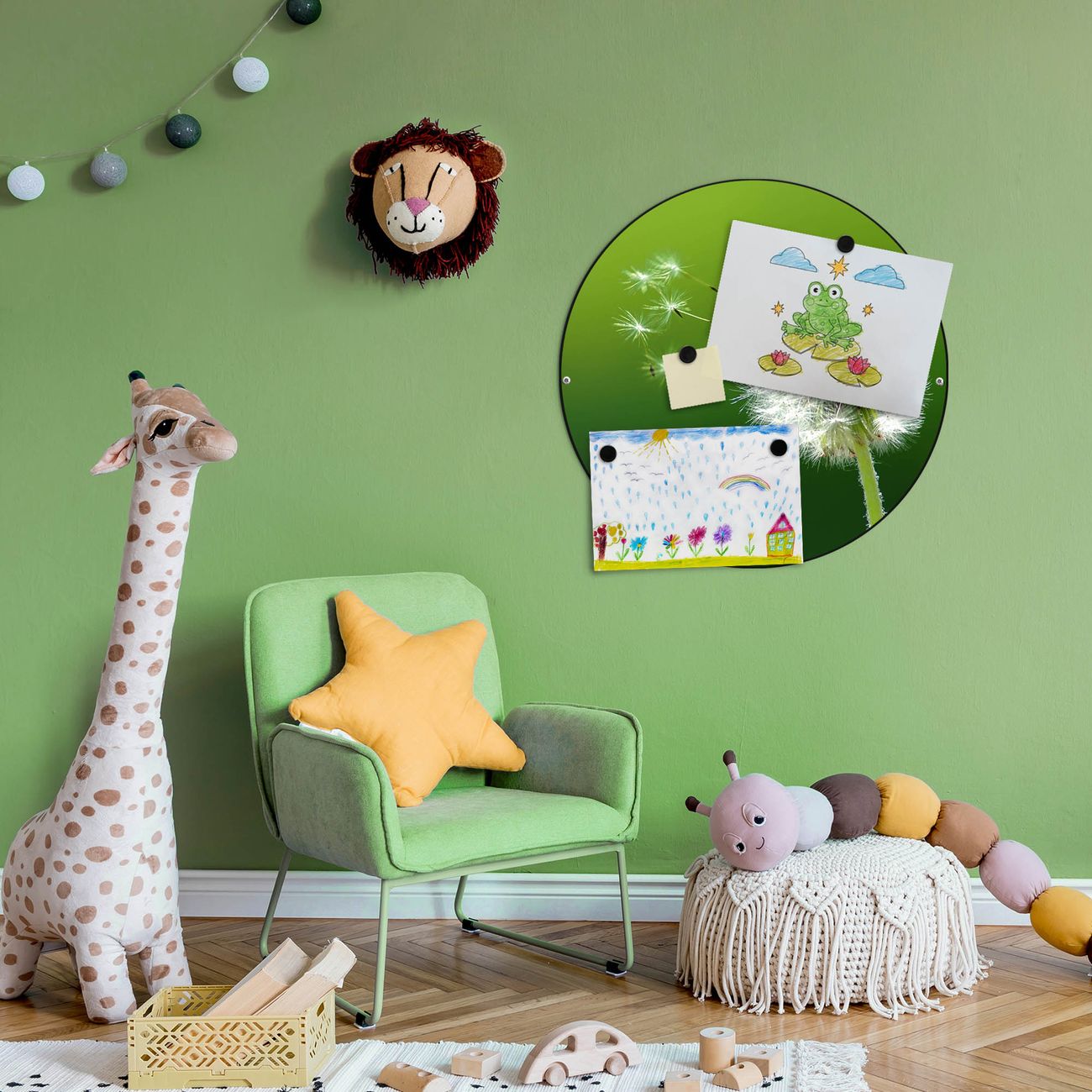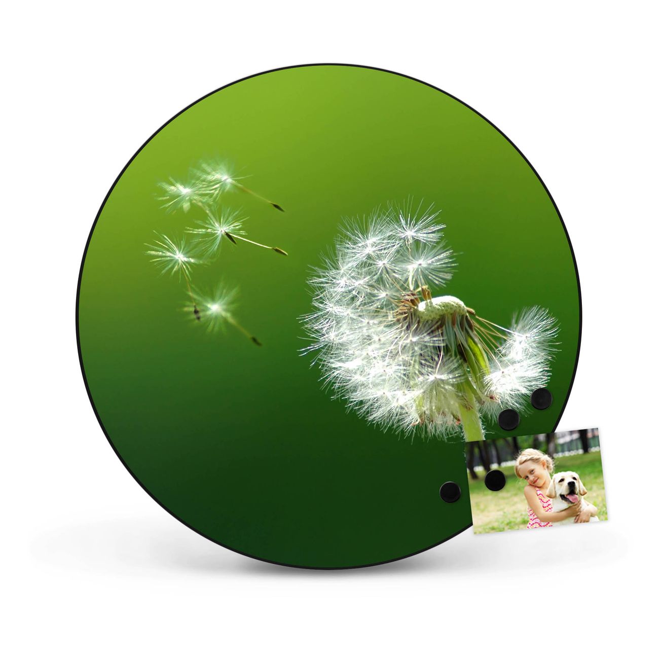 FUNKTION / DESIGN Die banjado Magnettafel mit dem Motiv Motiv Pusteblume bringt Ordnung in Ihr Zettelchaos. Fotos, Termine, Notizen oder Rezepte lassen Sich hier stilvoll mit Magneten ordnen, Sie behalten alles im Blick. Die Design Magnetwand ist beschreibbar und wieder abwischbar. Mit dieser Pinnwand haben Sie auch ohne Notizen und Magneten ein schönes Dekoelement. Das Format bietet Ihnen ausreichend Platz um alle wichtigen Informationen im Blick zu behalten. DETAILS / NUTZEN Die magnetische Metall Pinnwand besteht aus schwarz lackiertem Stahl. Sie hat einen Durchmesser von 47cm. Es befinden sich an den Seiten zwei vorgefertigte Löcher die eine schnelle und unkomplizierte Anbringung ermöglichen. Das Motiv ist mit einem seidenmatten Laminat versehen und schützt so zusätzlich vor Kratzern. Es halten alle handelsüblichen Magneten daran. Wir sind ein kleines Team aus dem Herzen von Sachsen. Wir fertigen alle Artikel von Hand für Sie an, Sie erhalten keine preiswerte Importware. Auf Wunsch können Sie auch Ihr eigenes Foto auf die Magnettafel aufbringen, schreiben Sie uns an.