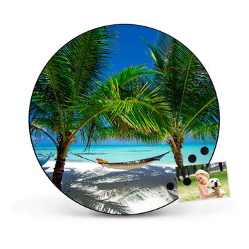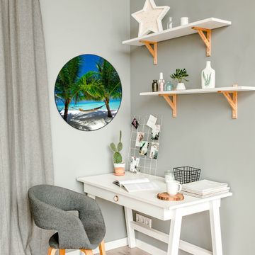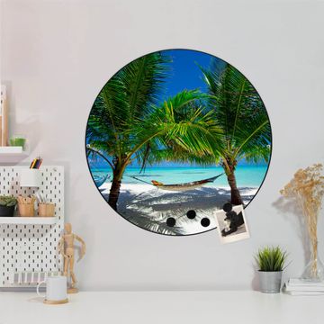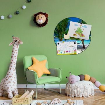 FUNKTION / DESIGN Die banjado Magnettafel mit dem Motiv Motiv Strand bringt Ordnung in Ihr Zettelchaos. Fotos, Termine, Notizen oder Rezepte lassen Sich hier stilvoll mit Magneten ordnen, Sie behalten alles im Blick. Die Design Magnetwand ist beschreibbar und wieder abwischbar. Mit dieser Pinnwand haben Sie auch ohne Notizen und Magneten ein schönes Dekoelement. Das Format bietet Ihnen ausreichend Platz um alle wichtigen Informationen im Blick zu behalten. DETAILS / NUTZEN Die magnetische Metall Pinnwand besteht aus schwarz lackiertem Stahl. Sie hat einen Durchmesser von 47cm. Es befinden sich an den Seiten zwei vorgefertigte Löcher die eine schnelle und unkomplizierte Anbringung ermöglichen. Das Motiv ist mit einem seidenmatten Laminat versehen und schützt so zusätzlich vor Kratzern. Es halten alle handelsüblichen Magneten daran. Wir sind ein kleines Team aus dem Herzen von Sachsen. Wir fertigen alle Artikel von Hand für Sie an, Sie erhalten keine preiswerte Importware. Auf Wunsch können Sie auch Ihr eigenes Foto auf die Magnettafel aufbringen, schreiben Sie uns an.