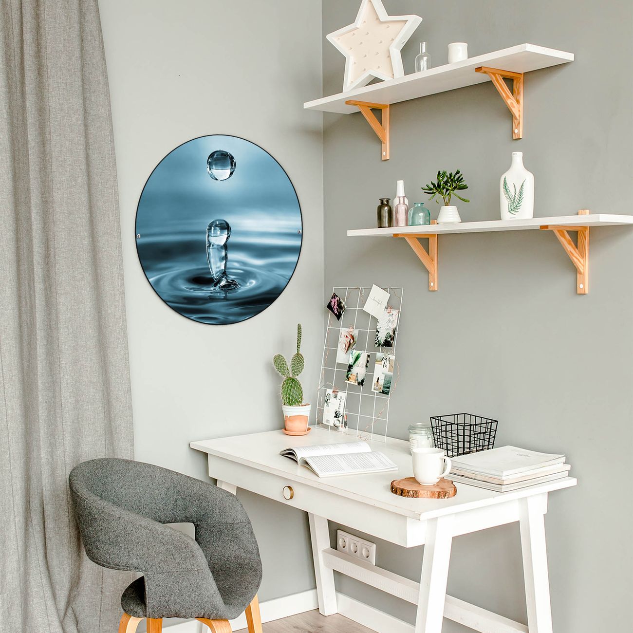 Stahl Magnettafel rund 47cm Wassertropfen