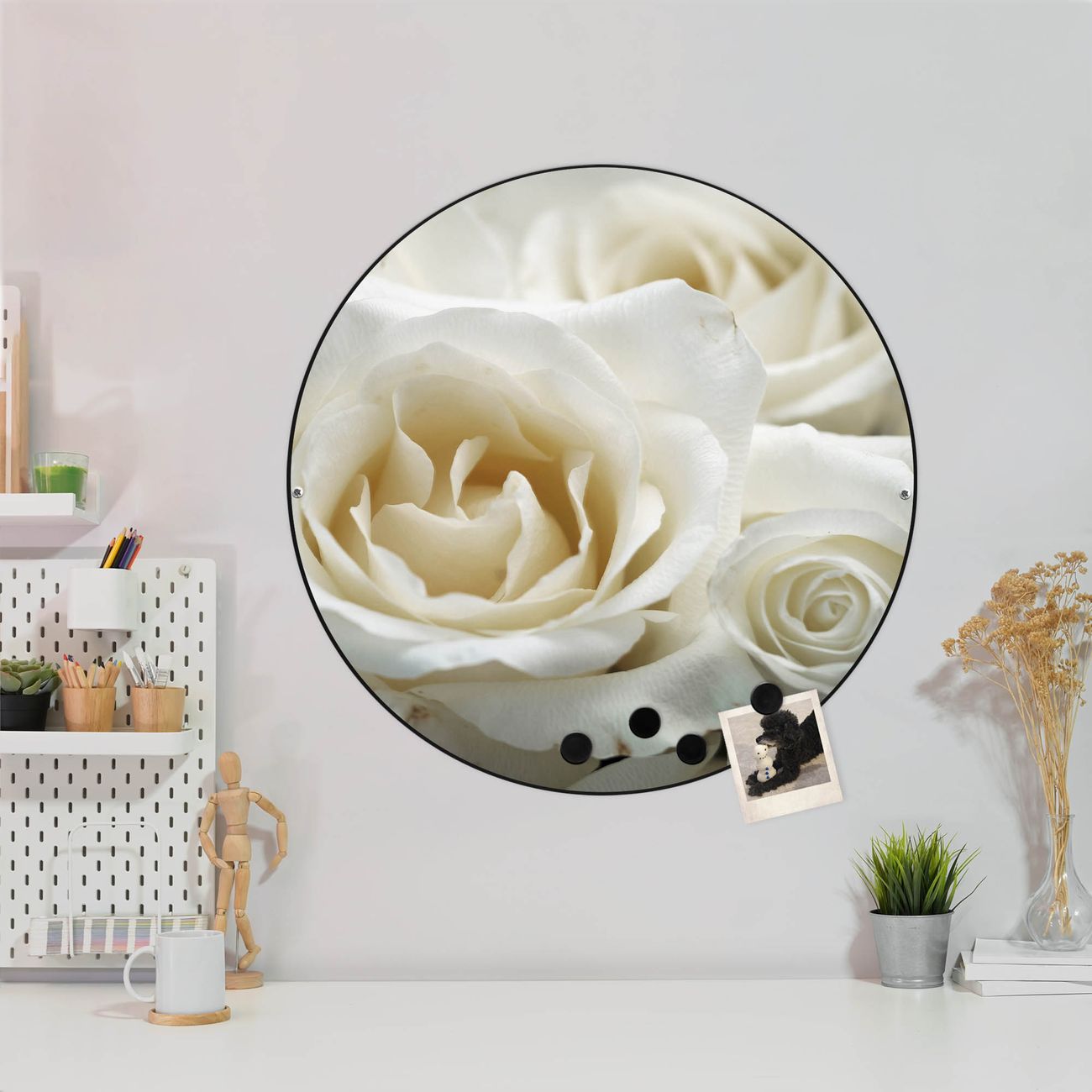 Stahl Magnettafel rund 47cm White Roses