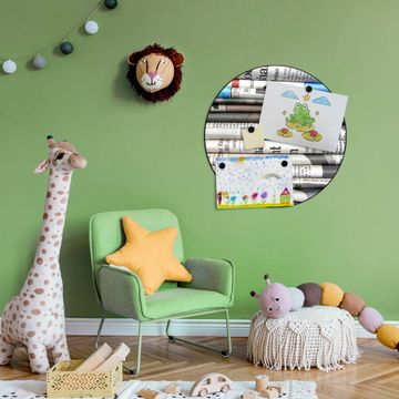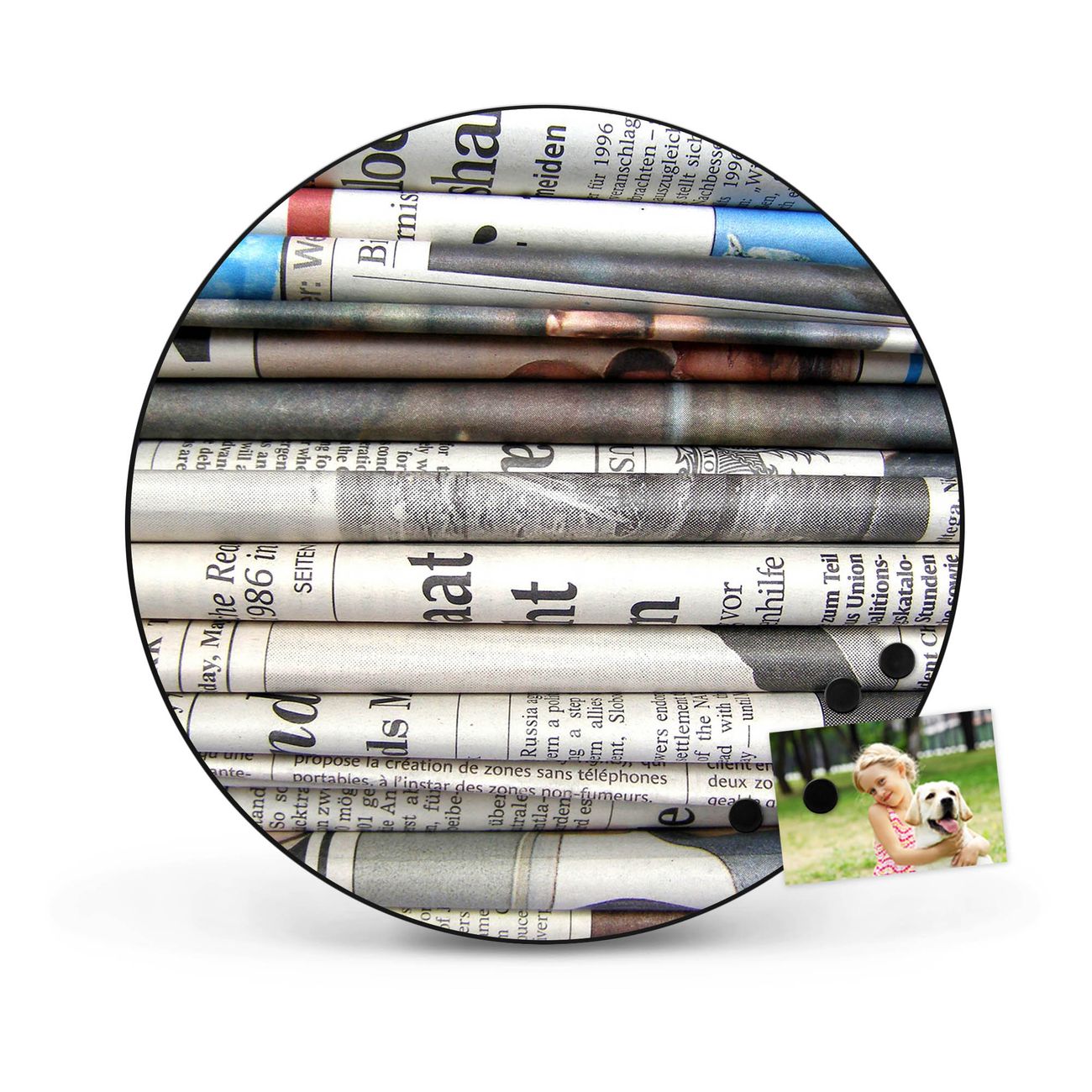 FUNKTION / DESIGN Die banjado Magnettafel mit dem Motiv Motiv Zeitungen bringt Ordnung in Ihr Zettelchaos. Fotos, Termine, Notizen oder Rezepte lassen Sich hier stilvoll mit Magneten ordnen, Sie behalten alles im Blick. Die Design Magnetwand ist beschreibbar und wieder abwischbar. Mit dieser Pinnwand haben Sie auch ohne Notizen und Magneten ein schönes Dekoelement. Das Format bietet Ihnen ausreichend Platz um alle wichtigen Informationen im Blick zu behalten. DETAILS / NUTZEN Die magnetische Metall Pinnwand besteht aus schwarz lackiertem Stahl. Sie hat einen Durchmesser von 47cm. Es befinden sich an den Seiten zwei vorgefertigte Löcher die eine schnelle und unkomplizierte Anbringung ermöglichen. Das Motiv ist mit einem seidenmatten Laminat versehen und schützt so zusätzlich vor Kratzern. Es halten alle handelsüblichen Magneten daran. Wir sind ein kleines Team aus dem Herzen von Sachsen. Wir fertigen alle Artikel von Hand für Sie an, Sie erhalten keine preiswerte Importware. Auf Wunsch können Sie auch Ihr eigenes Foto auf die Magnettafel aufbringen, schreiben Sie uns an.