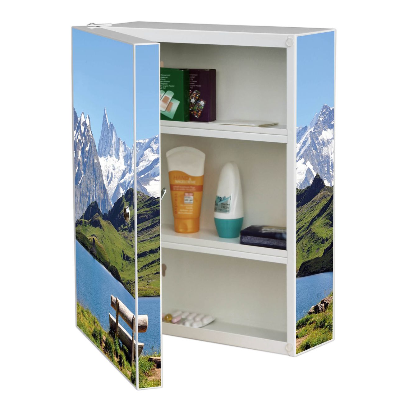 Medizinschrank Stahl Motiv Alpen