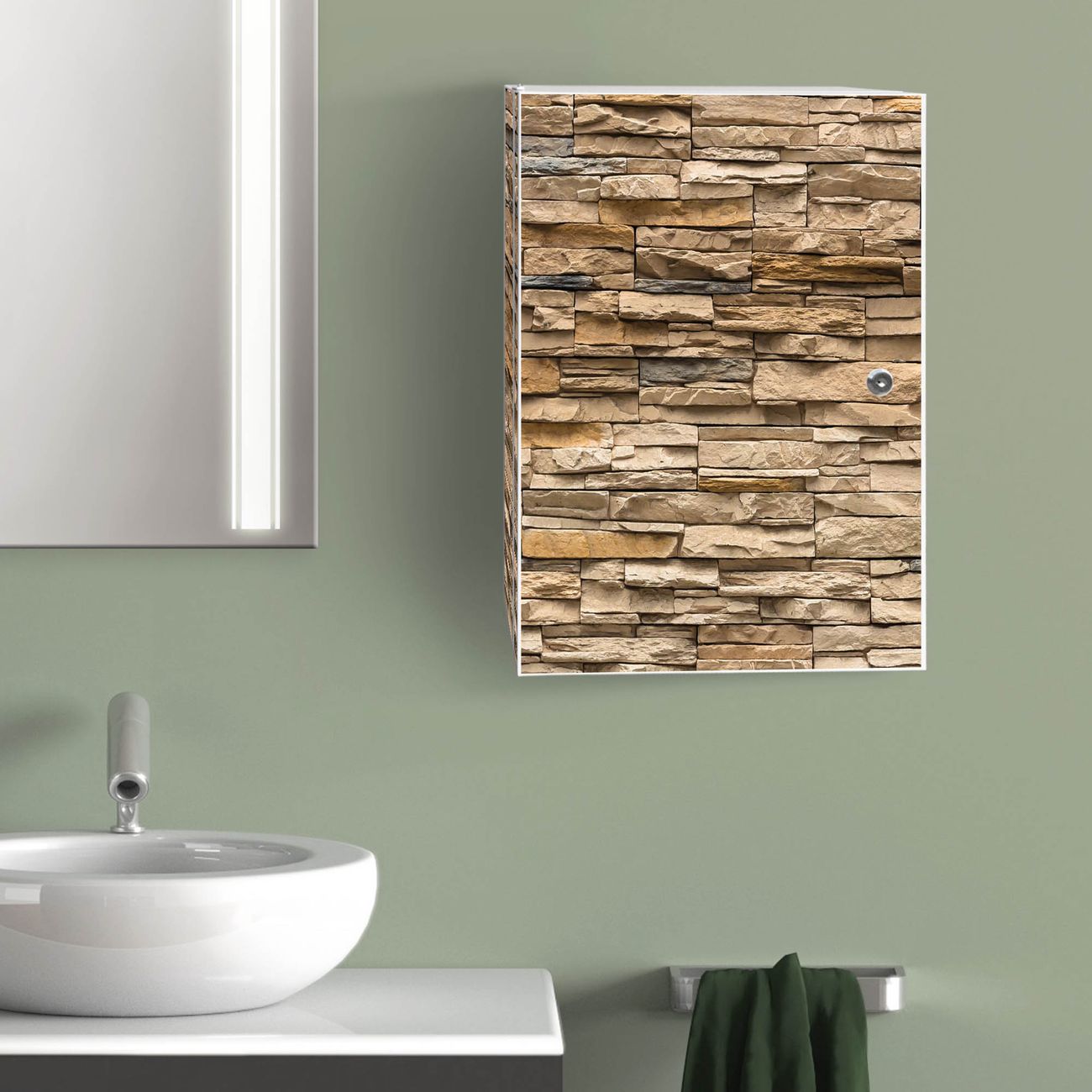 Medizinschrank Stahl Motiv Alte Mauer