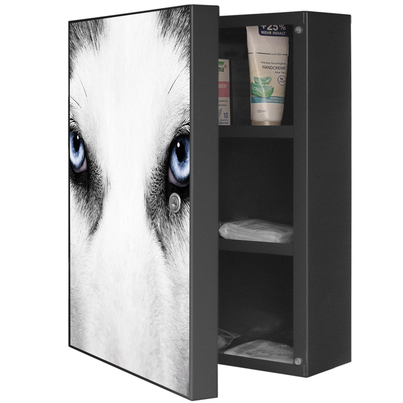 Der Medizinschrank ist gesamt 35x46x15cm groß und wiegt ca. 3900g. Der Türanschlag ist links und kann nicht verändert werden, die Fronttür öffnet ca. 115°. Die Folierung befindet sich auf der Front. Das Gehäuse ist zeitlos anthrazit und aus Stahl gefertigt. Die innenliegenden Fächer haben verschiedene Größen für unterschiedliche Aufbewahrungsmöglichkeiten, in der Innentür können ebenfalls Dinge abgelegt werden. Befestigt wird der Medizinschrank an 4 Stellen auf der Rückseite, Sie erhalten 3 Schlüssel.