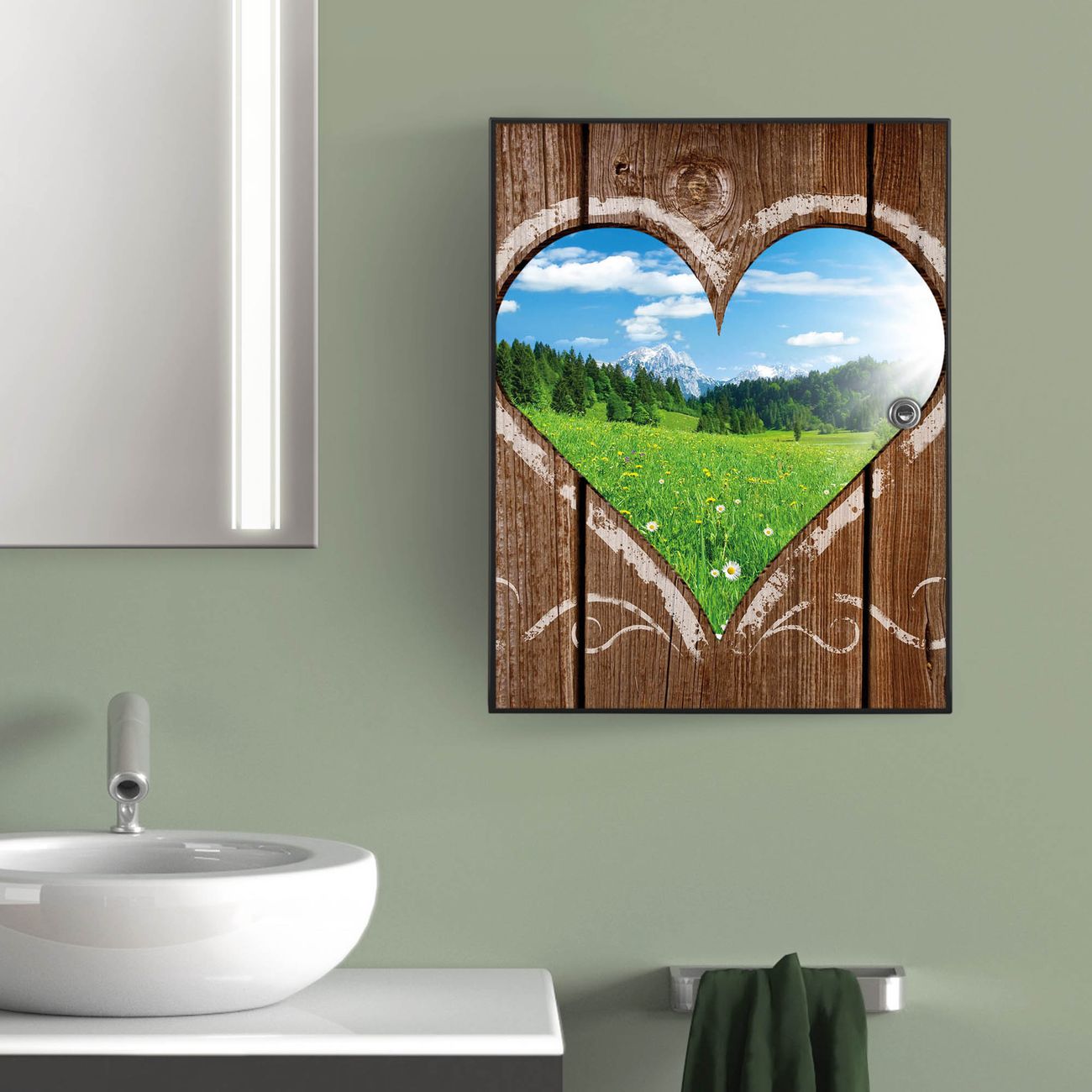 Medizinschrank Stahl Motiv Ausblick mit Herz