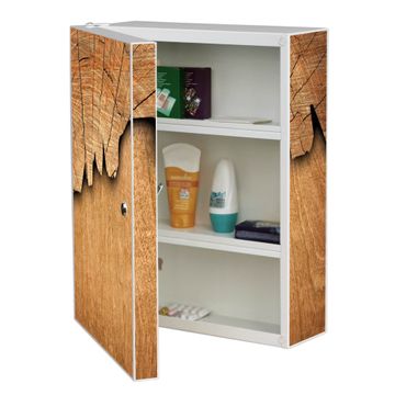 Der Medizinschrank ist gesamt 35x46x15cm groß und wiegt ca. 3900g. Der Türanschlag ist links und kann nicht verändert werden, die Fronttür öffnet ca. 115°. Die Folierung befindet sich auf der Front und den Seiten. Das Gehäuse ist zeitlos weiß und aus Stahl gefertigt. Die innenliegenden Fächer haben verschiedene Größen für unterschiedliche Aufbewahrungsmöglichkeiten, in der Innentür können ebenfalls Dinge abgelegt werden. Befestigt wird der Medizinschrank an 4 Stellen auf der Rückseite, Sie erhalten 3 Schlüssel.