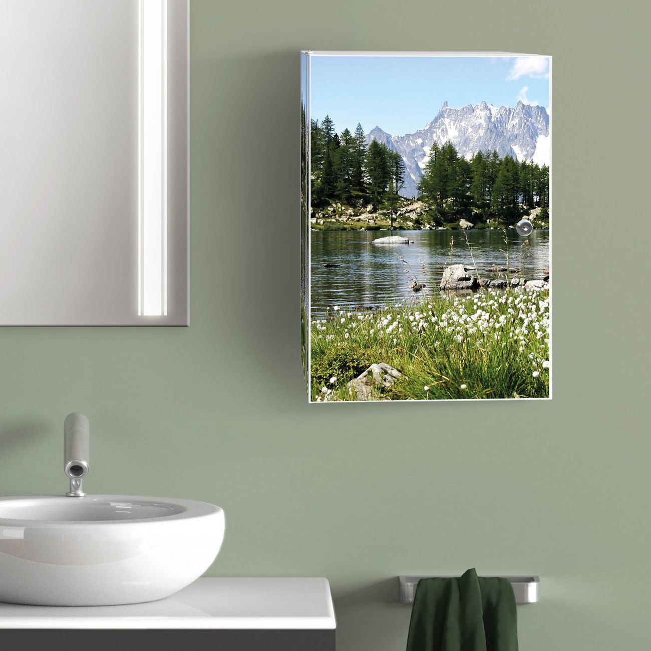 Der Medizinschrank ist gesamt 35x46x15cm groß und wiegt ca. 3900g. Der Türanschlag ist links und kann nicht verändert werden, die Fronttür öffnet ca. 115°. Die Folierung befindet sich auf der Front und den Seiten. Das Gehäuse ist zeitlos weiß und aus Stahl gefertigt. Die innenliegenden Fächer haben verschiedene Größen für unterschiedliche Aufbewahrungsmöglichkeiten, in der Innentür können ebenfalls Dinge abgelegt werden. Befestigt wird der Medizinschrank an 4 Stellen auf der Rückseite, Sie erhalten 3 Schlüssel.