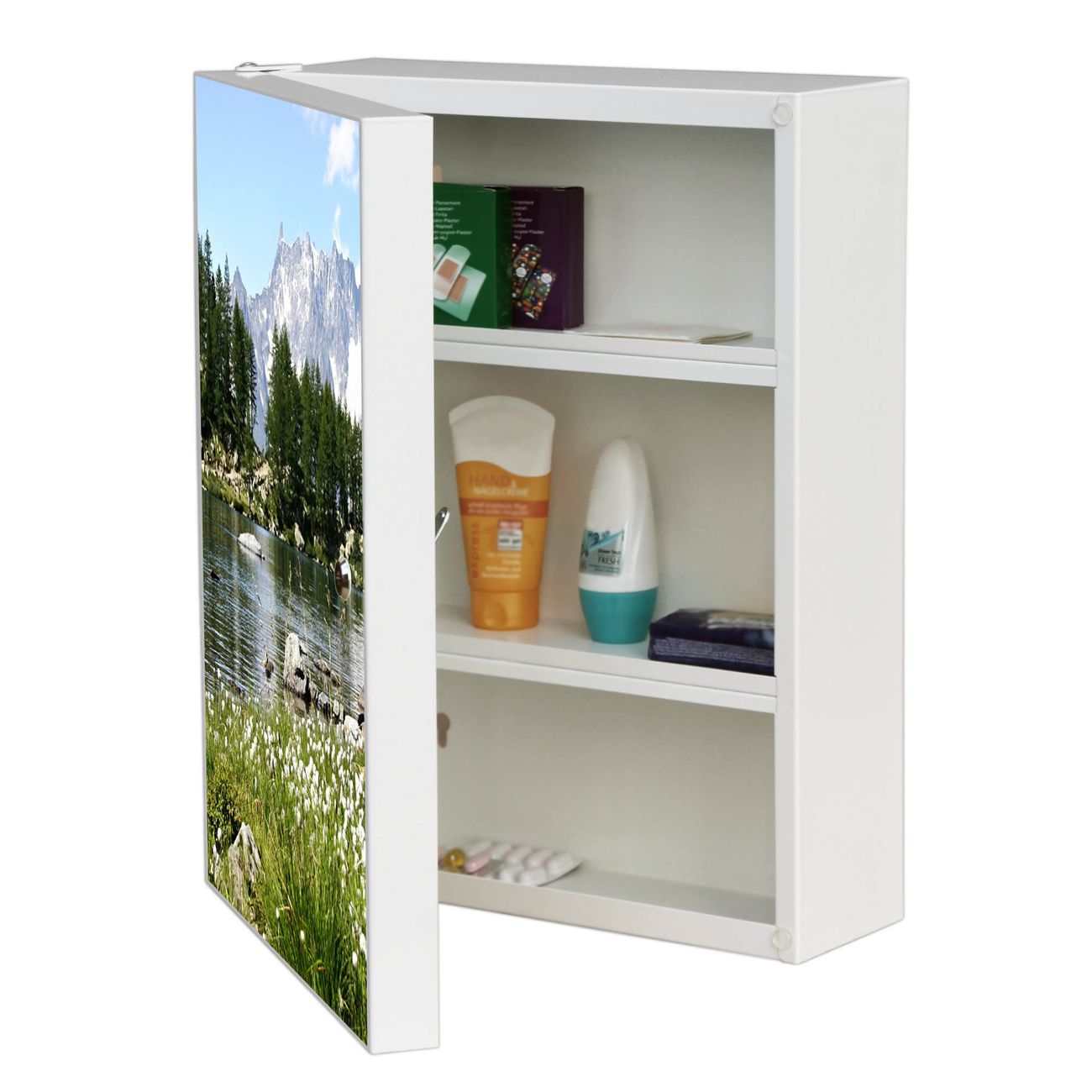 Medizinschrank Stahl Motiv Bergidylle