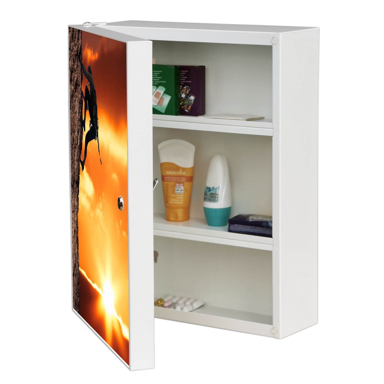 Medizinschrank Stahl Motiv Bergsteiger
