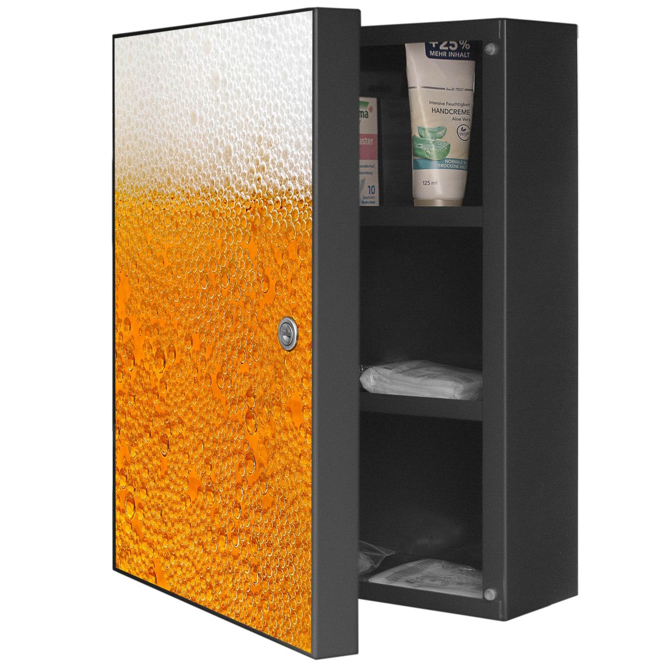 Der Medizinschrank ist gesamt 35x46x15cm groß und wiegt ca. 3900g. Der Türanschlag ist links und kann nicht verändert werden, die Fronttür öffnet ca. 115°. Die Folierung befindet sich auf der Front. Das Gehäuse ist zeitlos anthrazit und aus Stahl gefertigt. Die innenliegenden Fächer haben verschiedene Größen für unterschiedliche Aufbewahrungsmöglichkeiten, in der Innentür können ebenfalls Dinge abgelegt werden. Befestigt wird der Medizinschrank an 4 Stellen auf der Rückseite, Sie erhalten 3 Schlüssel.
