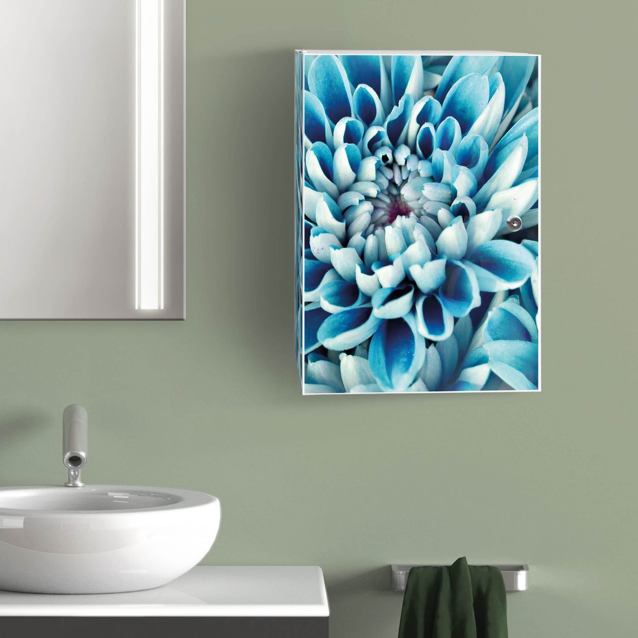 Medizinschrank Stahl Motiv Blaue Blüten