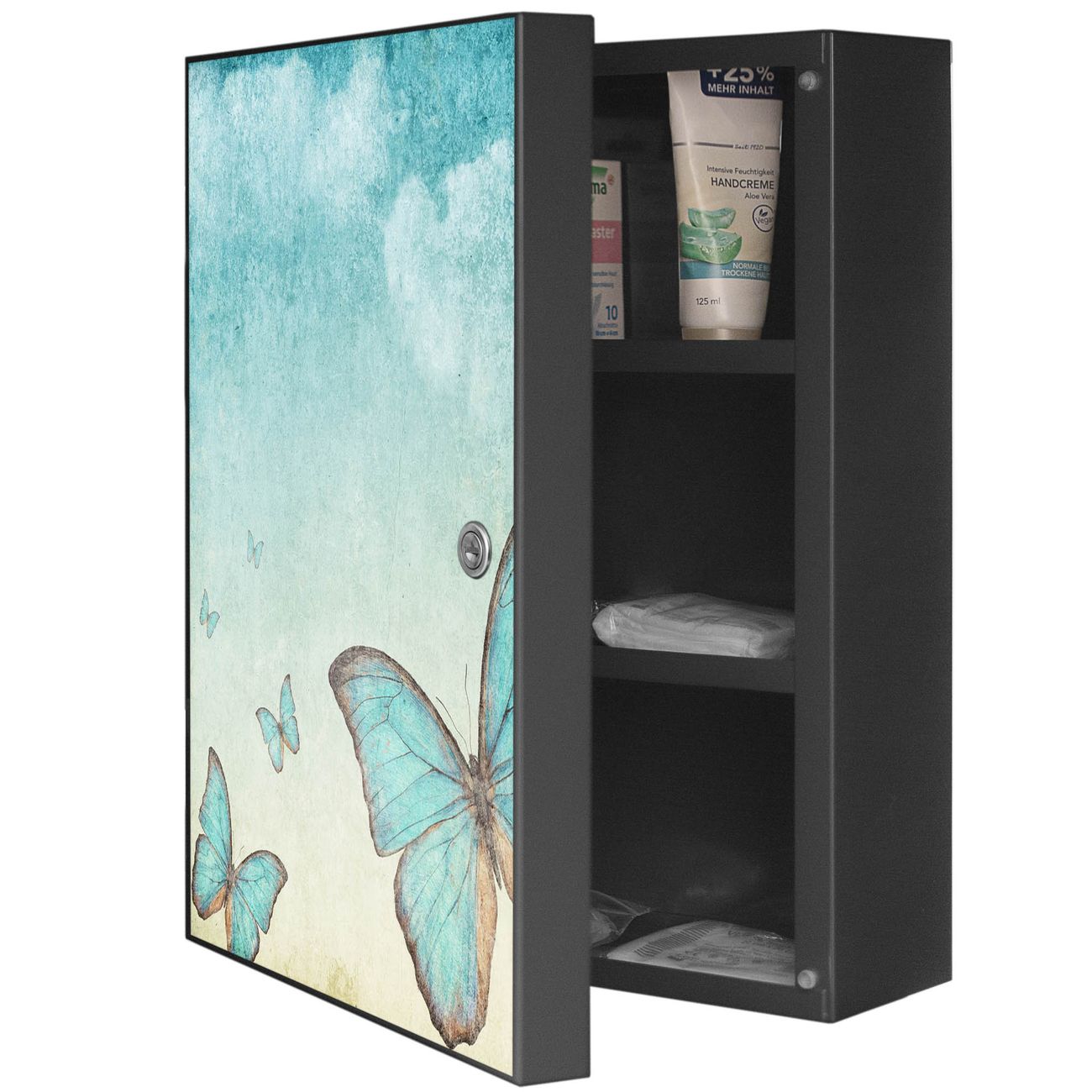 Medizinschrank Stahl Motiv Blaue Schmetterlinge