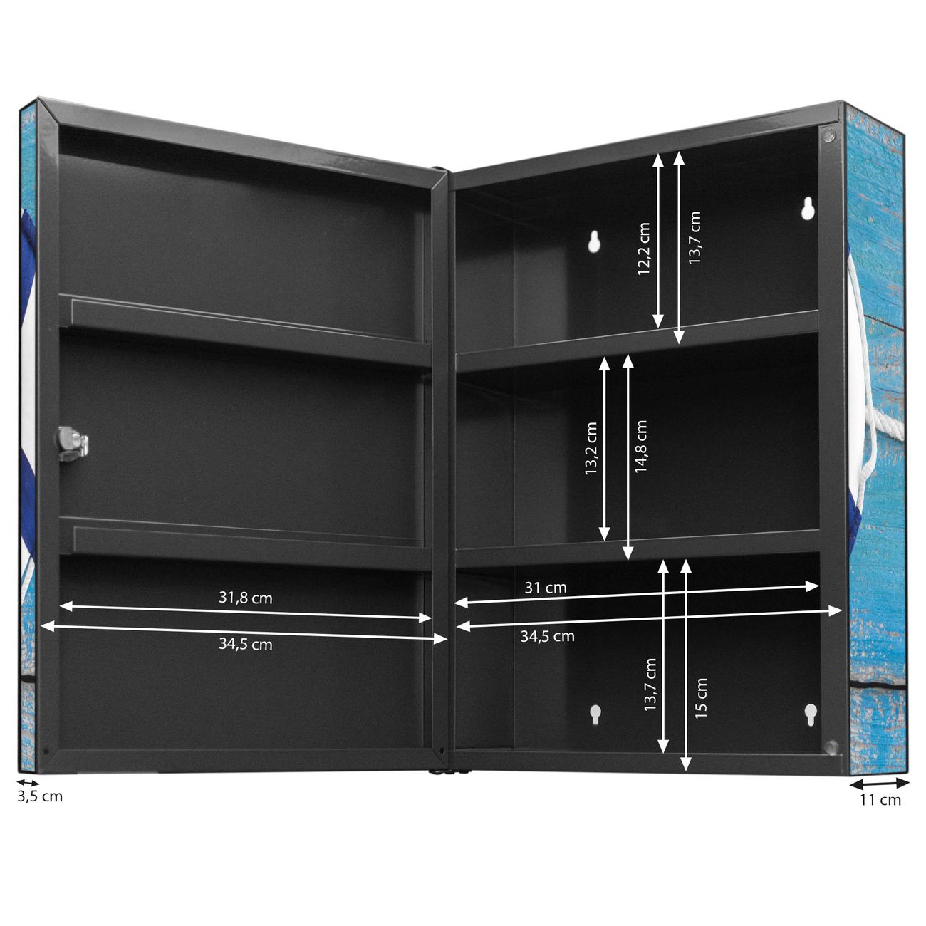 Medizinschrank Stahl Motiv Blauer Rettungsring