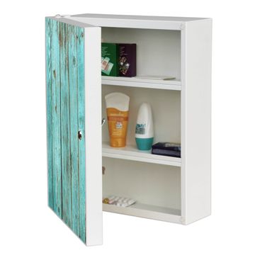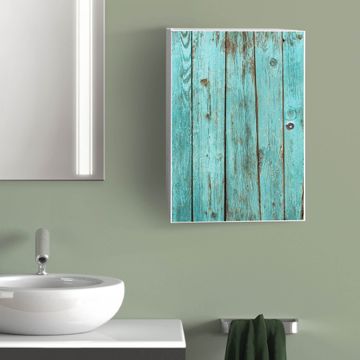 Medizinschrank Stahl Motiv Blaues Holz
