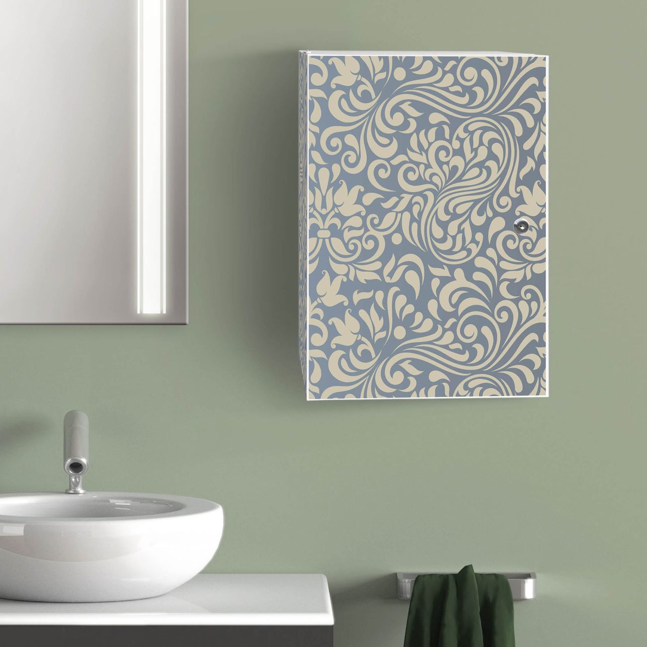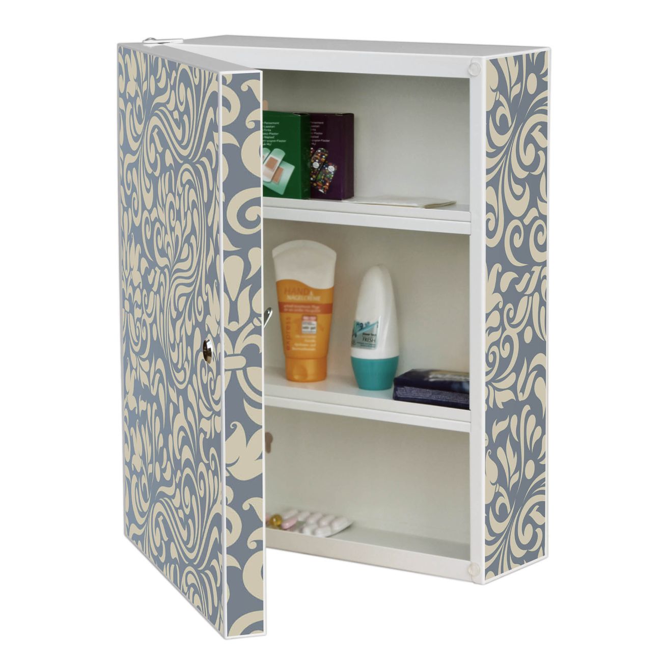 Medizinschrank Stahl Motiv Blaues Ornament