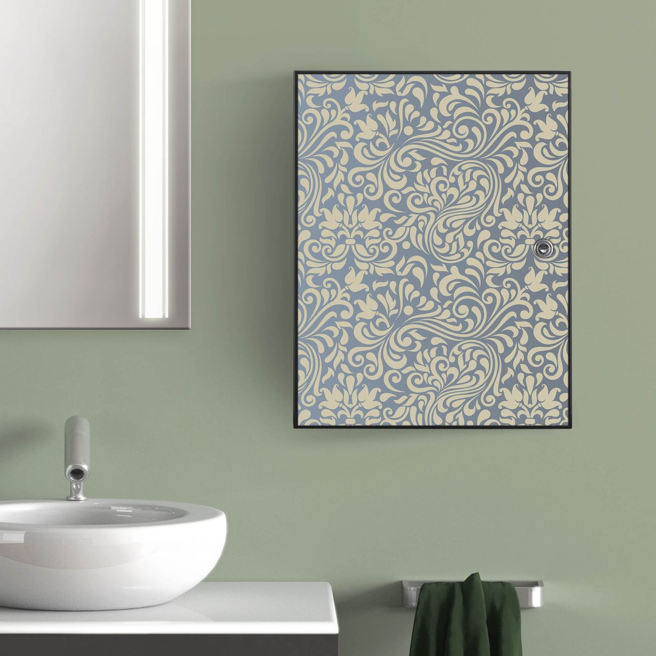 Medizinschrank Stahl Motiv Blaues Ornament
