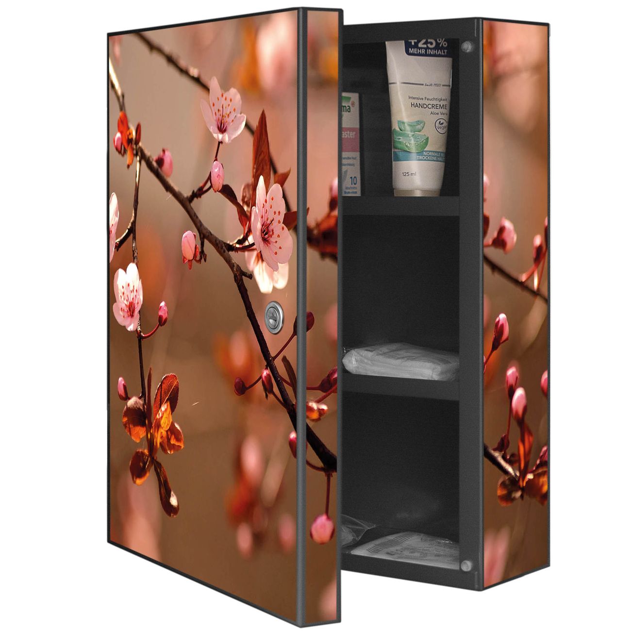 Medizinschrank Stahl Motiv Blühender Kirschzweig