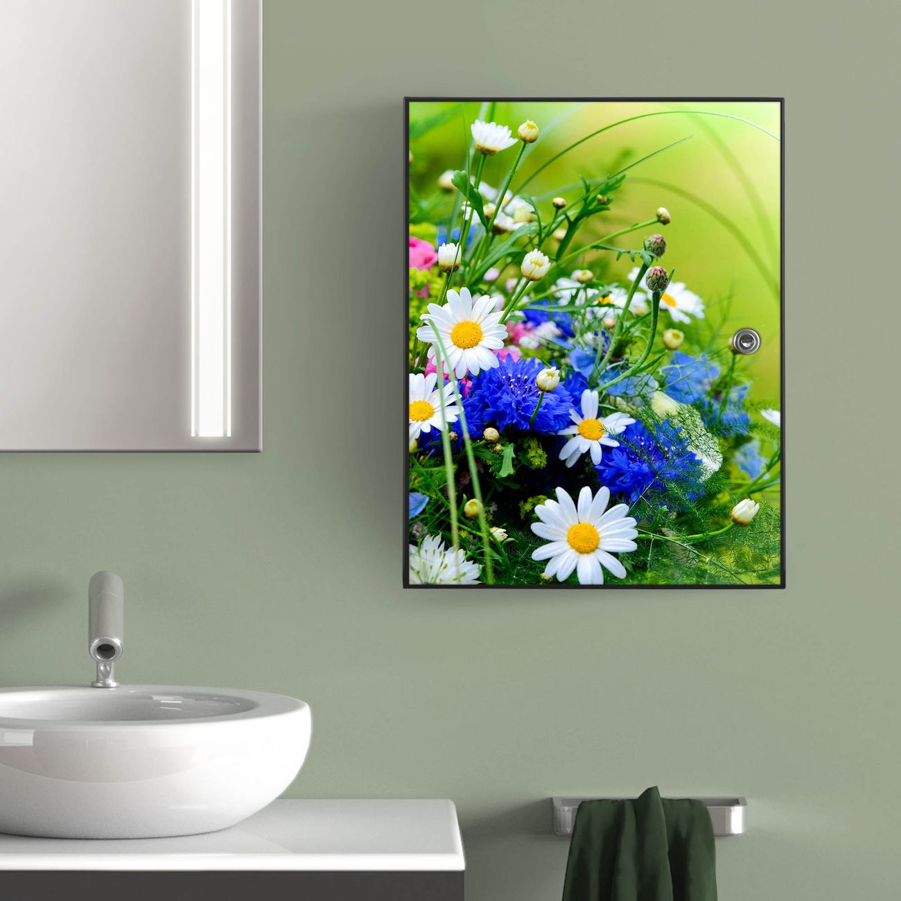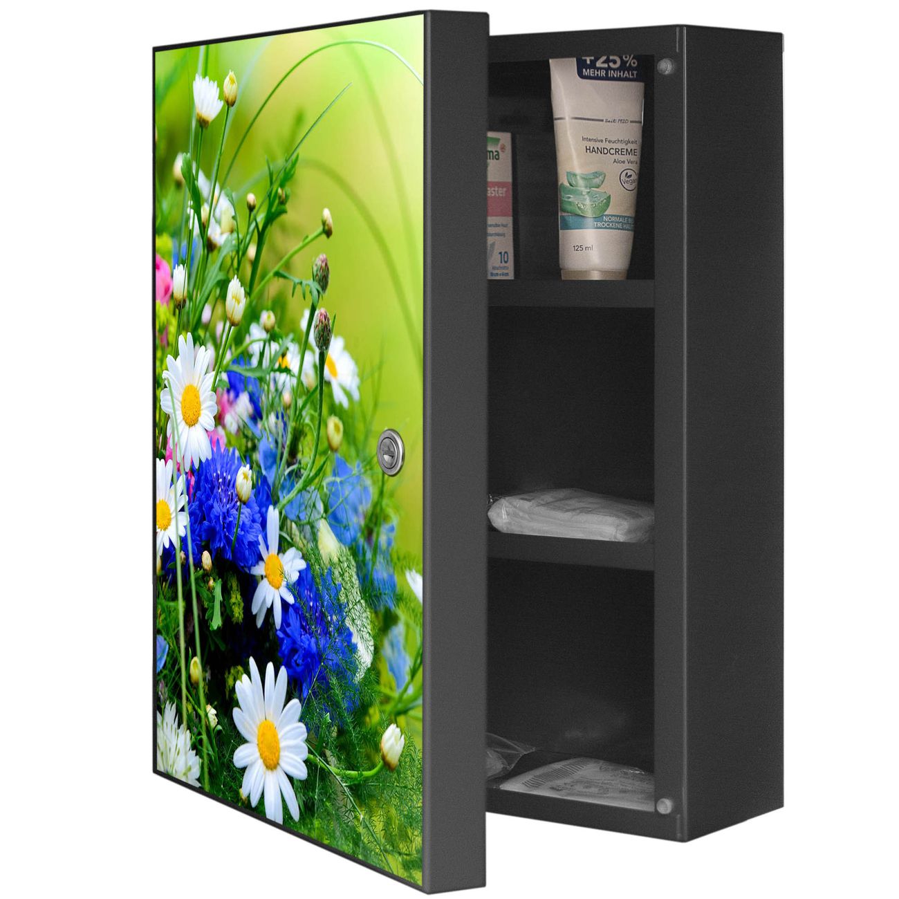 Medizinschrank Stahl Motiv Blumenstrauß
