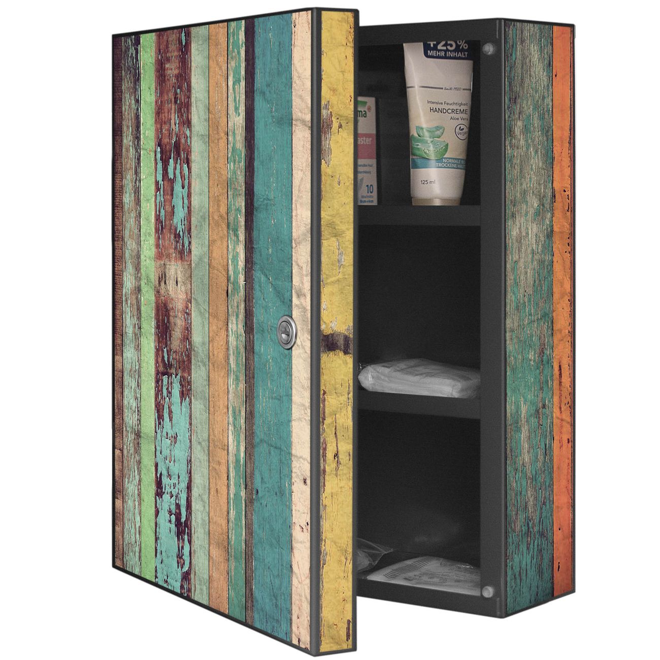 Medizinschrank Stahl Motiv Bunte Bretterwand