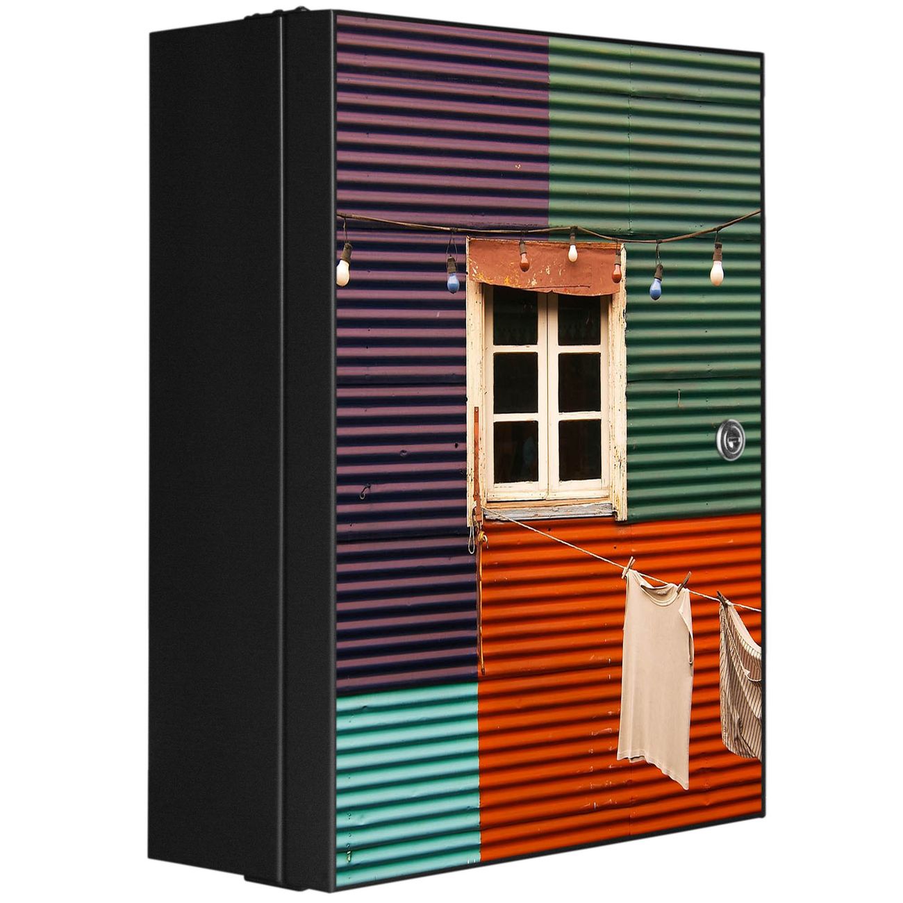 Medizinschrank Stahl Motiv Buntes Haus
