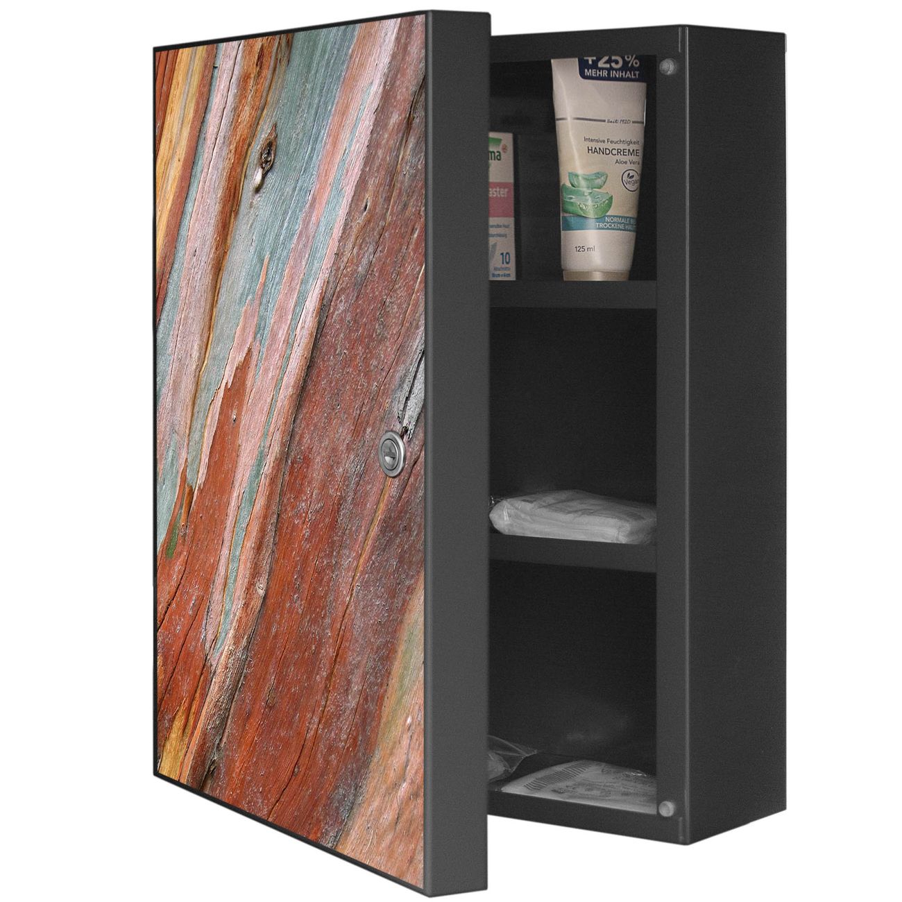 Der Medizinschrank ist gesamt 35x46x15cm groß und wiegt ca. 3900g. Der Türanschlag ist links und kann nicht verändert werden, die Fronttür öffnet ca. 115°. Die Folierung befindet sich auf der Front. Das Gehäuse ist zeitlos anthrazit und aus Stahl gefertigt. Die innenliegenden Fächer haben verschiedene Größen für unterschiedliche Aufbewahrungsmöglichkeiten, in der Innentür können ebenfalls Dinge abgelegt werden. Befestigt wird der Medizinschrank an 4 Stellen auf der Rückseite, Sie erhalten 3 Schlüssel.