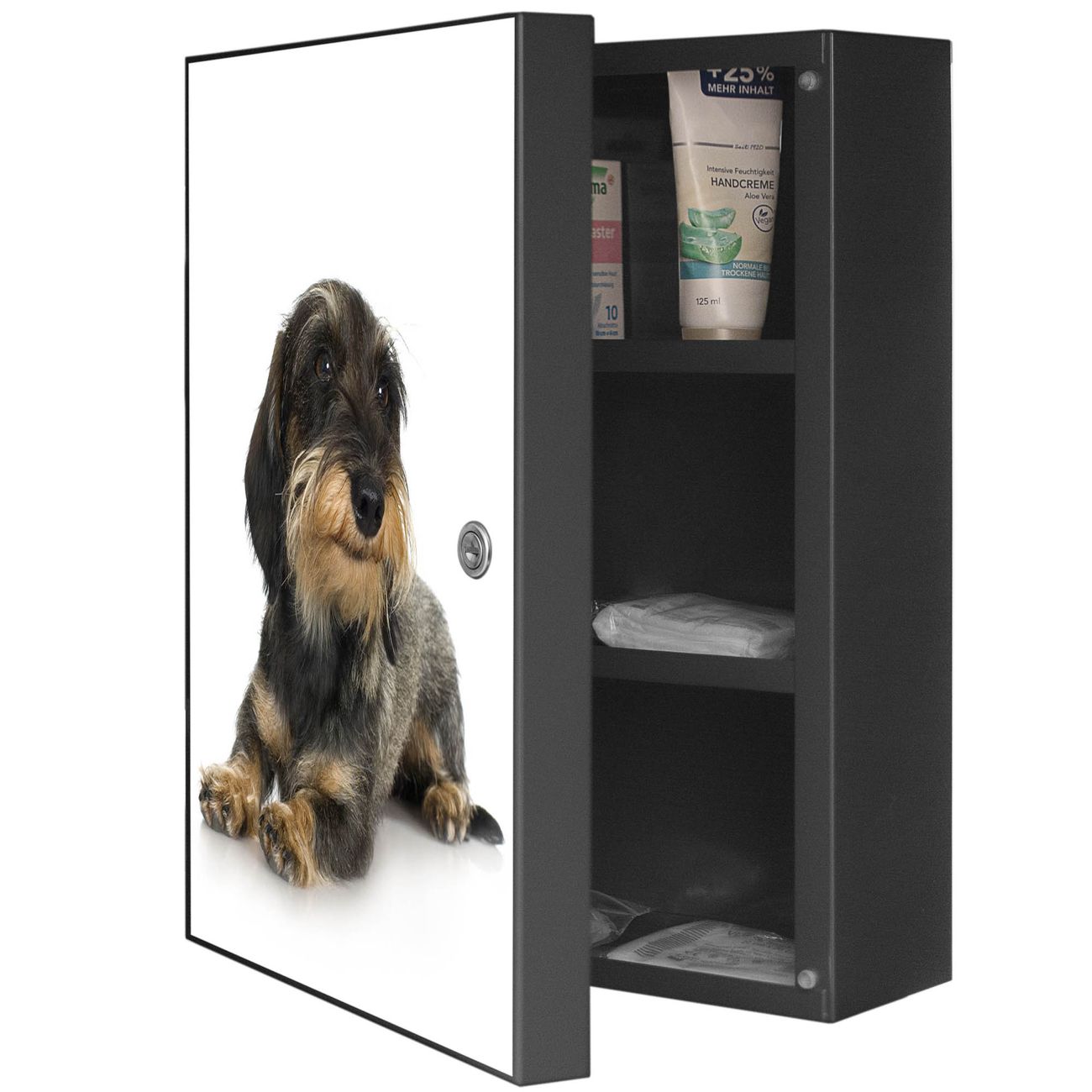 Medizinschrank Stahl Motiv Dackel