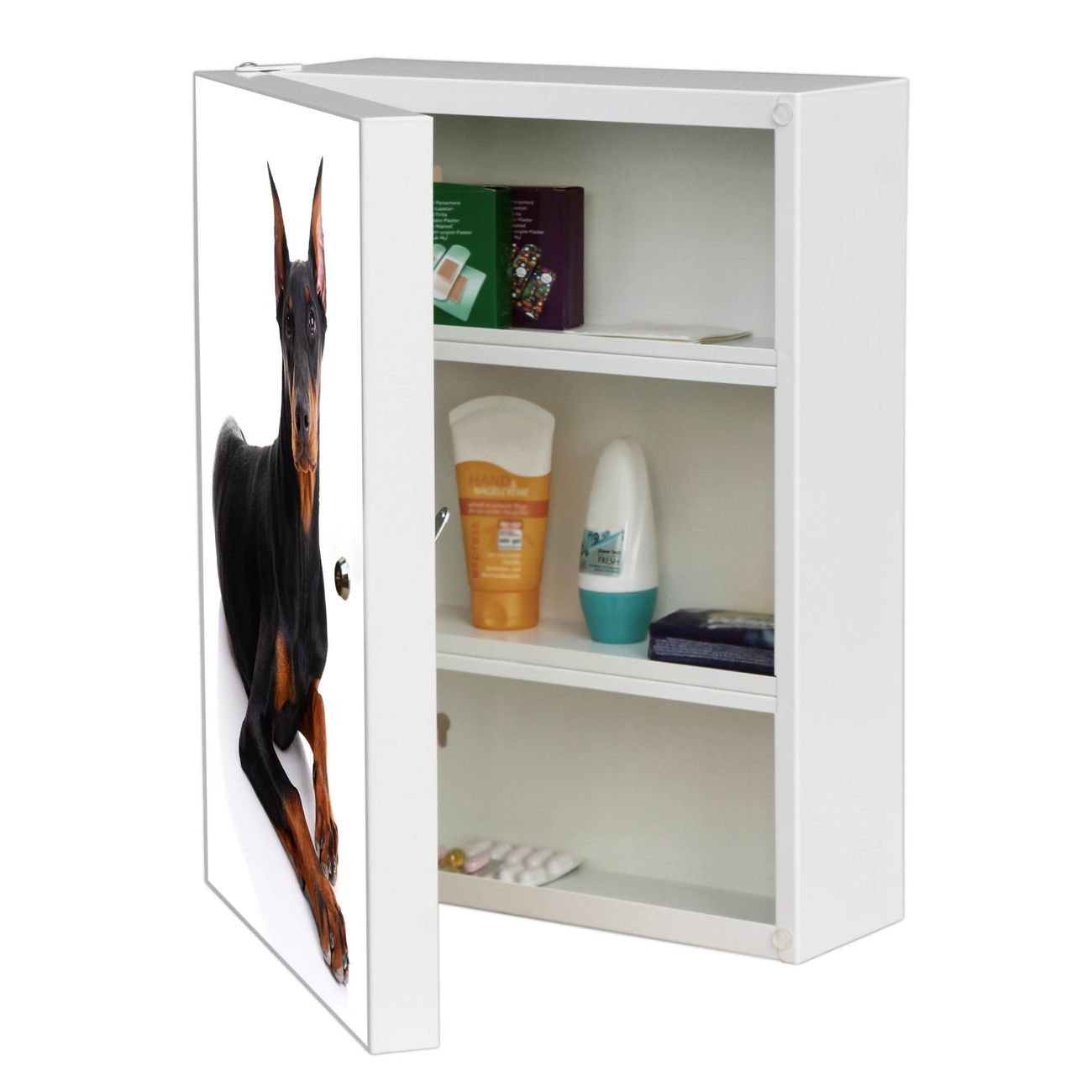Medizinschrank Stahl Motiv Dobermann