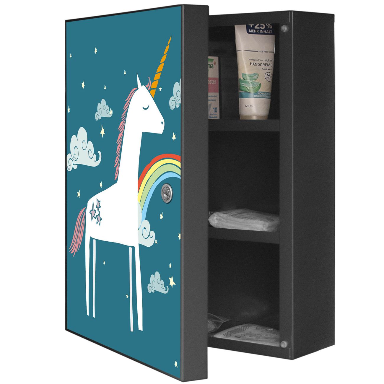 Medizinschrank Stahl Motiv Einhorn
