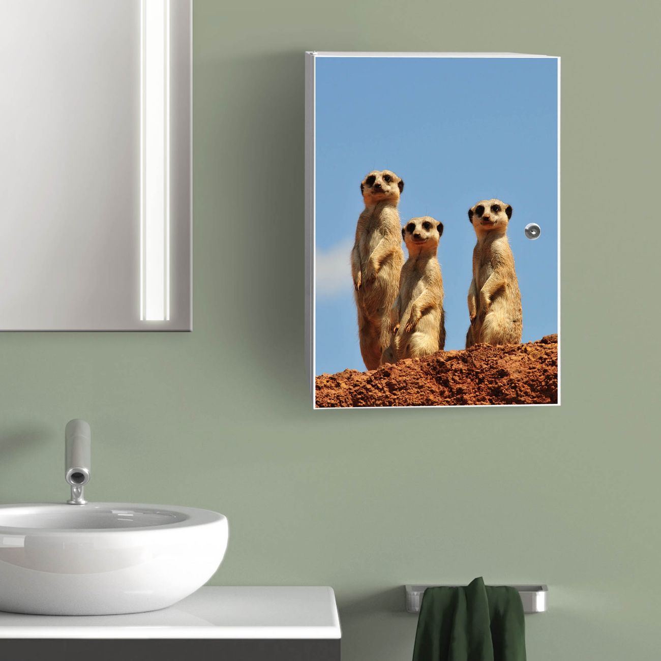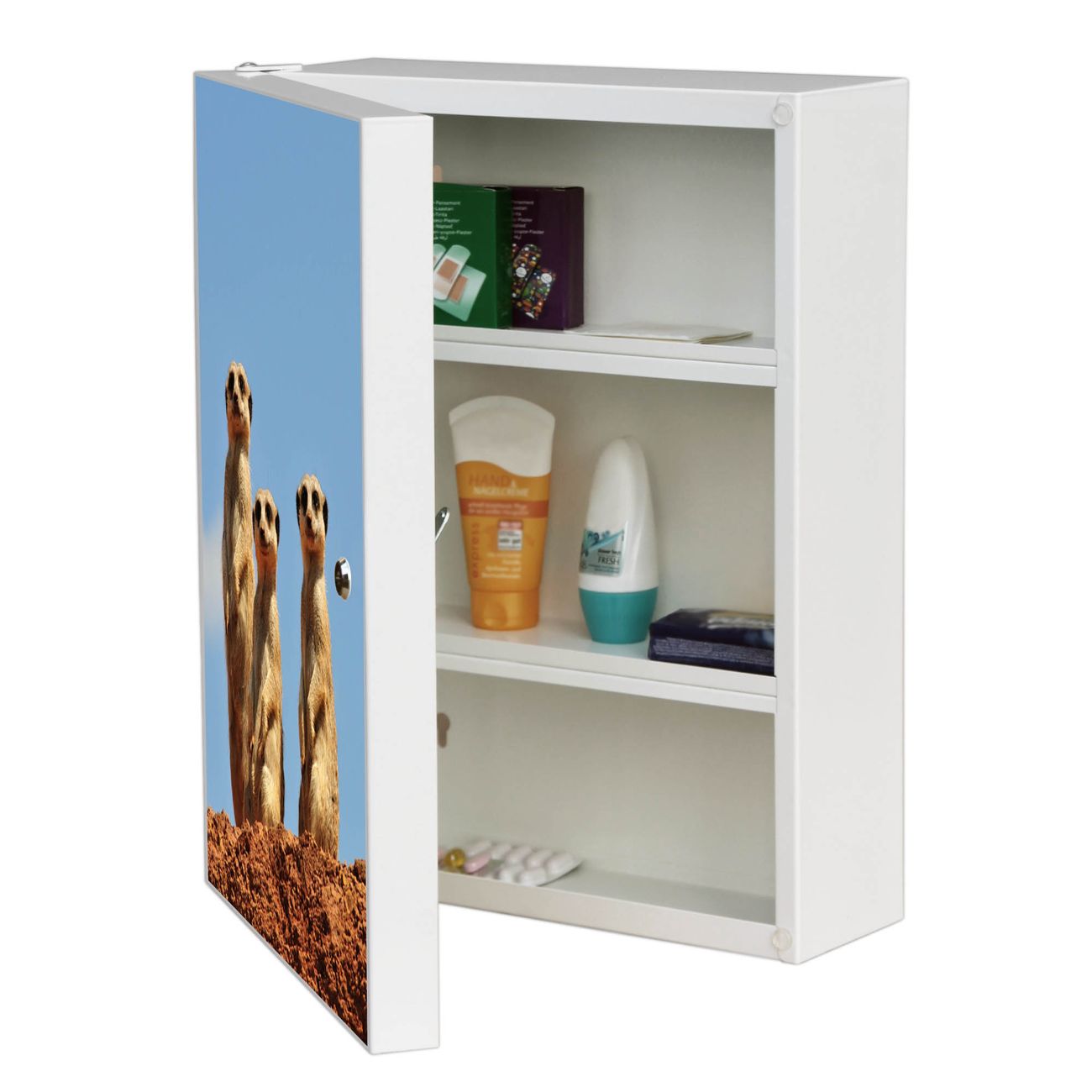 Medizinschrank Stahl Motiv Erdmännchenfamilie