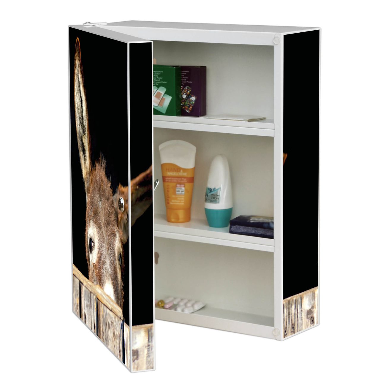 Medizinschrank Stahl Motiv Esel