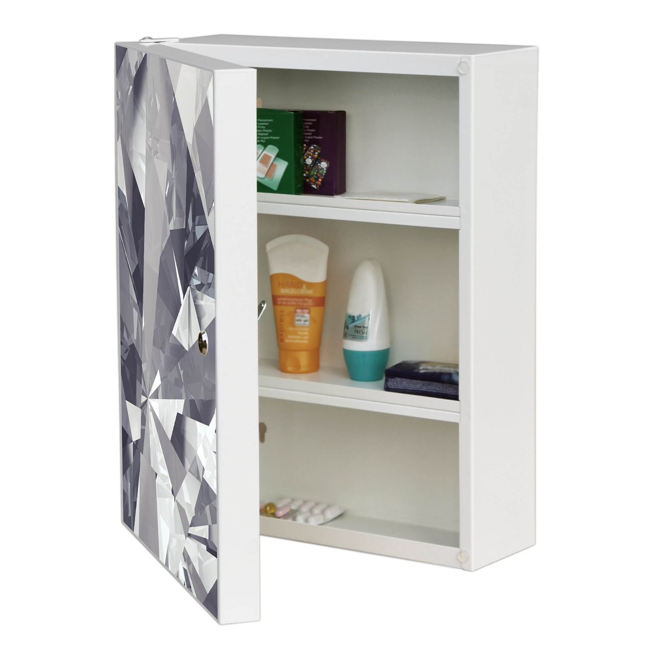 Medizinschrank Stahl Motiv Facetten Monochrome