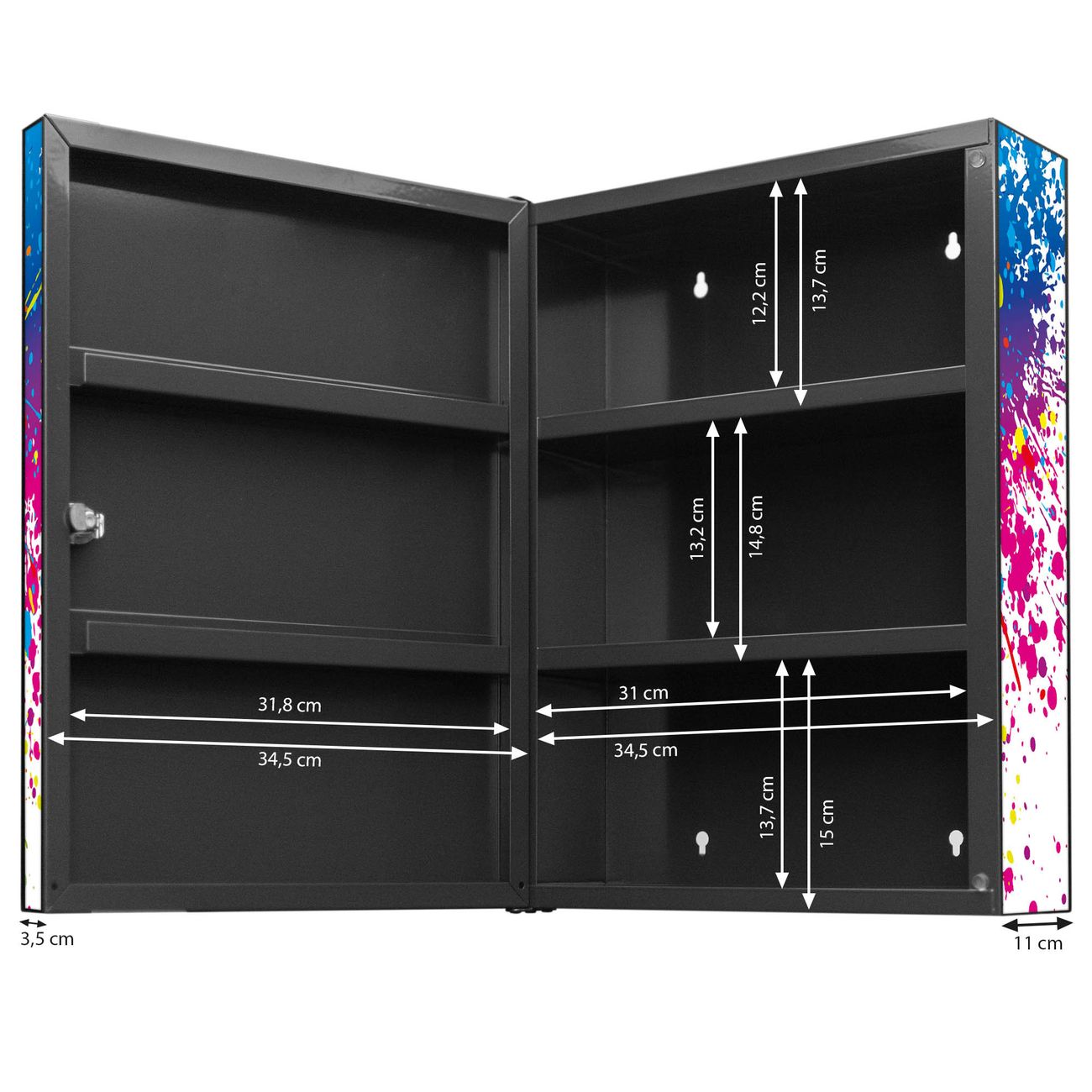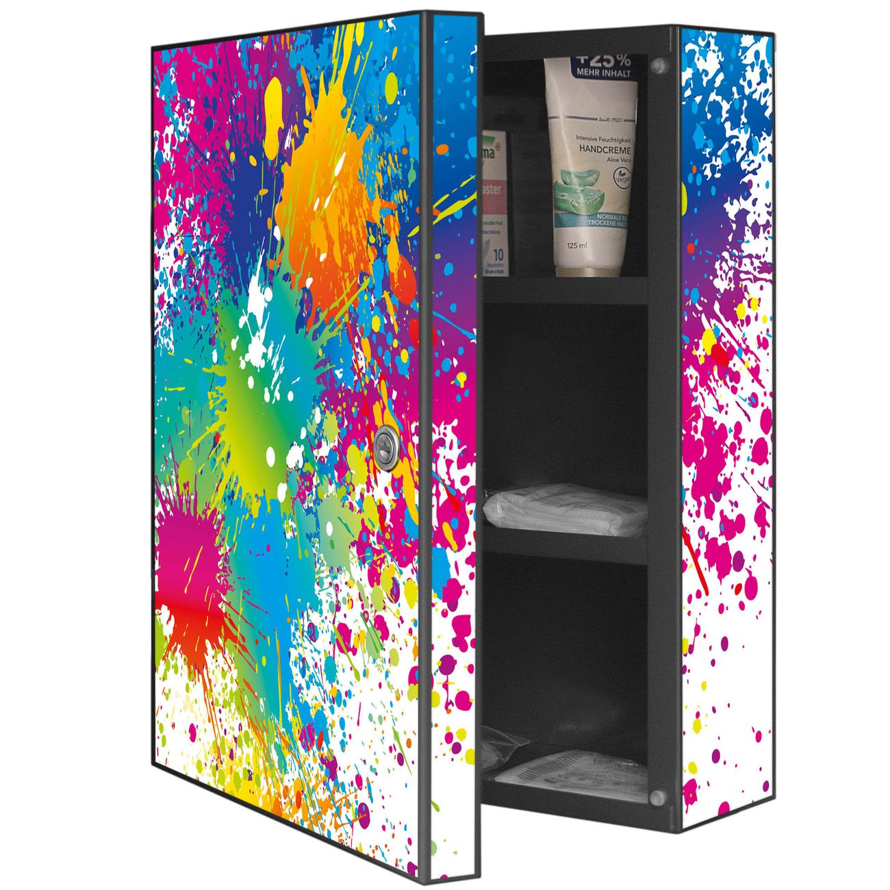 Medizinschrank Stahl Motiv Farbspritzer