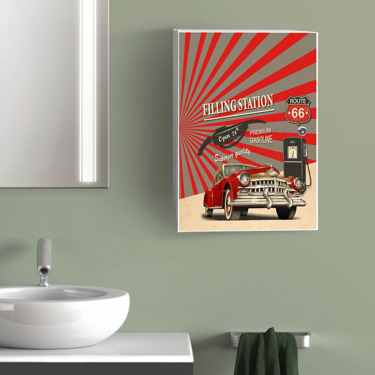 Medizinschrank Stahl Motiv Filling Station