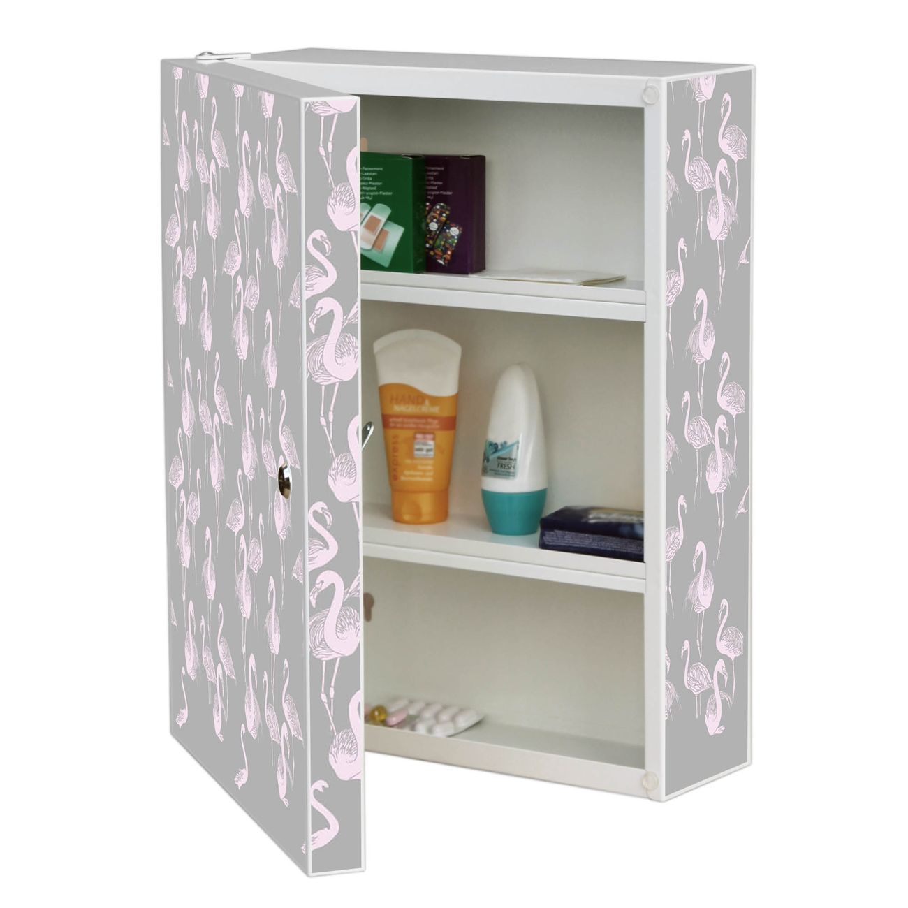 Medizinschrank Stahl Motiv Flamingos Blass
