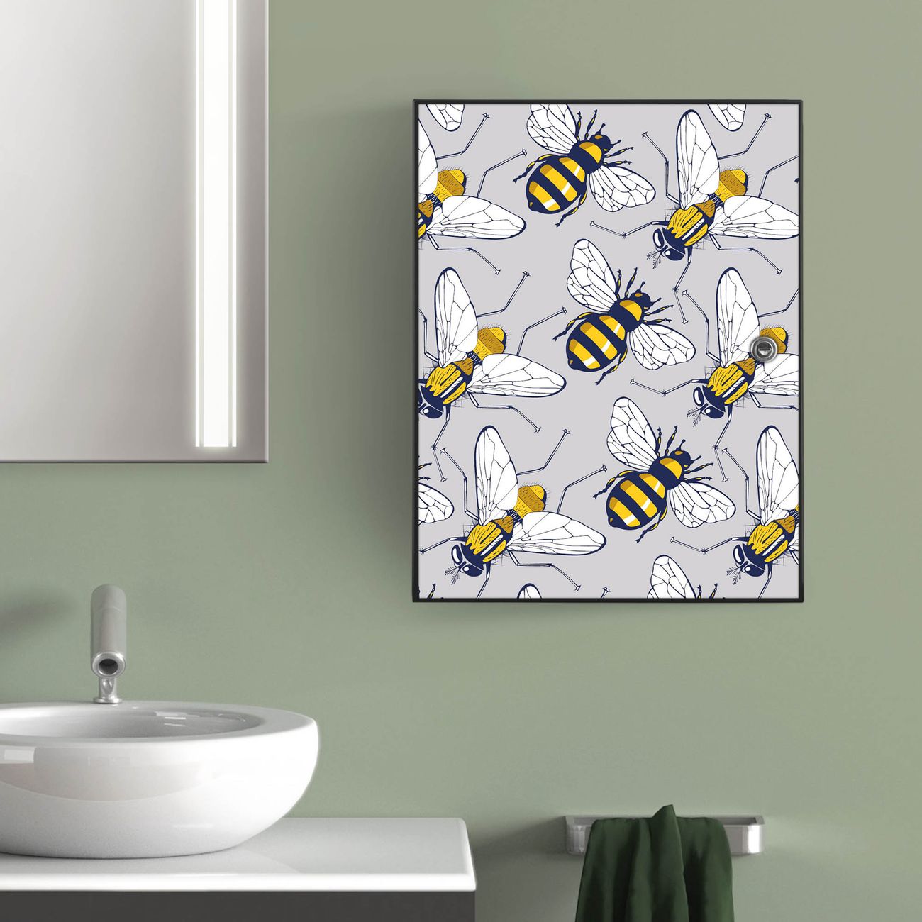 Medizinschrank Stahl Motiv Fliegen und Bienen