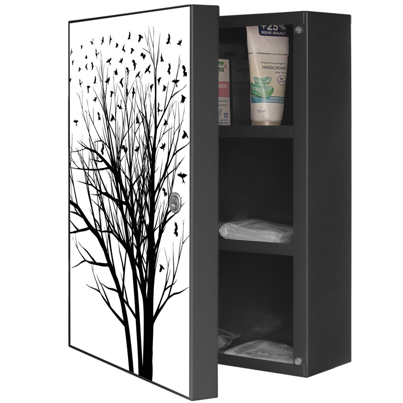 Medizinschrank Stahl Motiv Fortfliegen