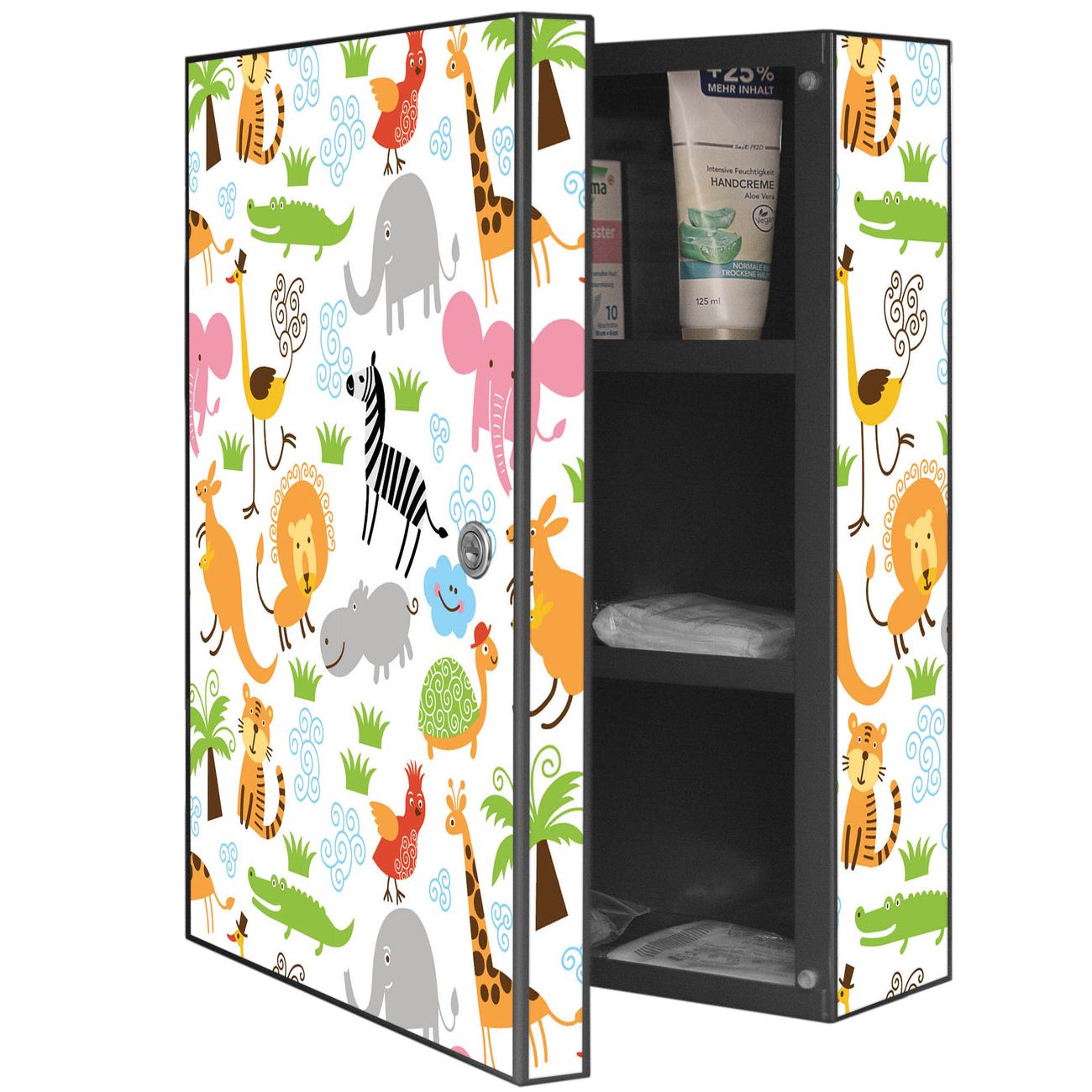 Medizinschrank Stahl Motiv Fröhliche Tiere