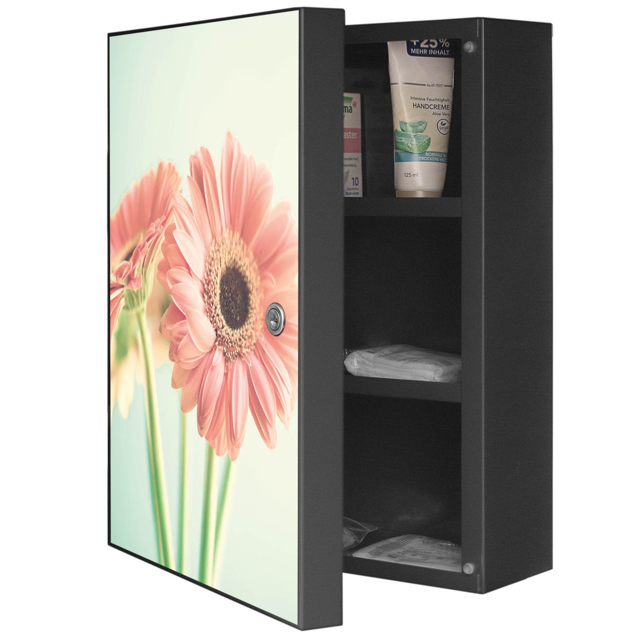 Medizinschrank Stahl Motiv Fünf Gerbera