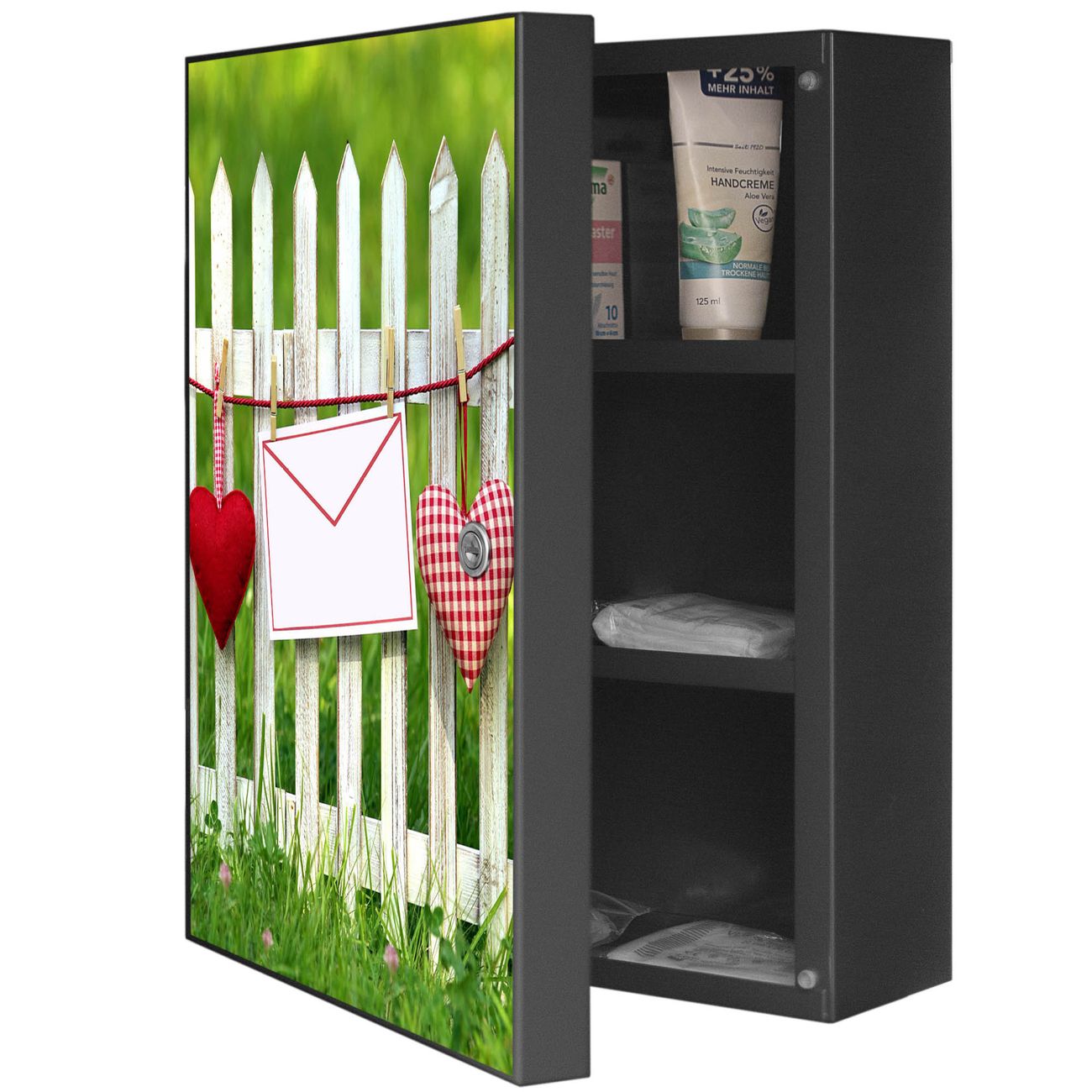 Medizinschrank Stahl Motiv Gartenzaun