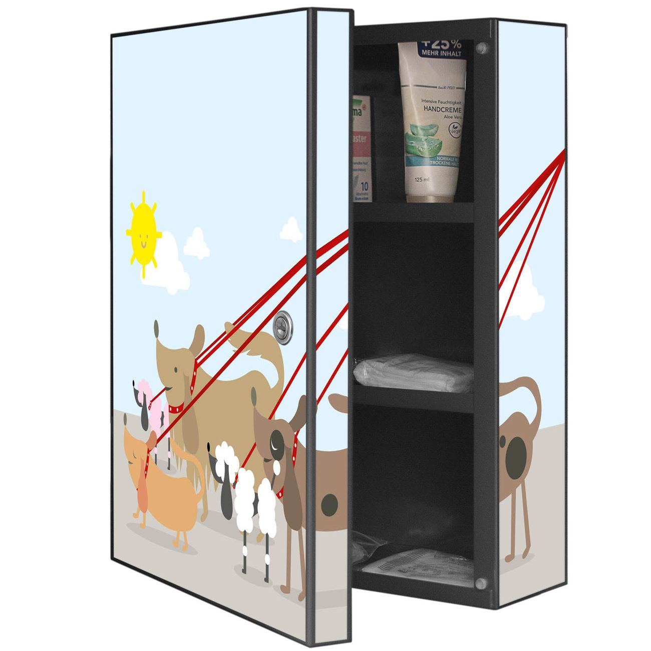 Medizinschrank Stahl Motiv Gassi Gehen