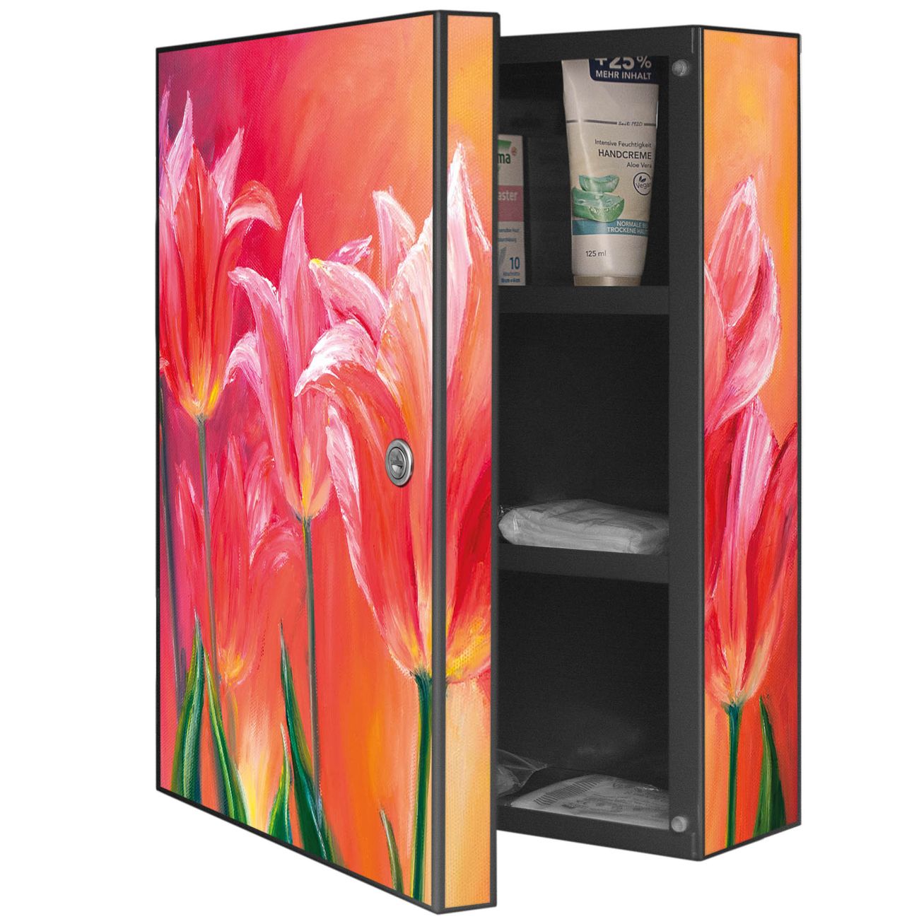 Medizinschrank Stahl Motiv Gemalte Tulpen