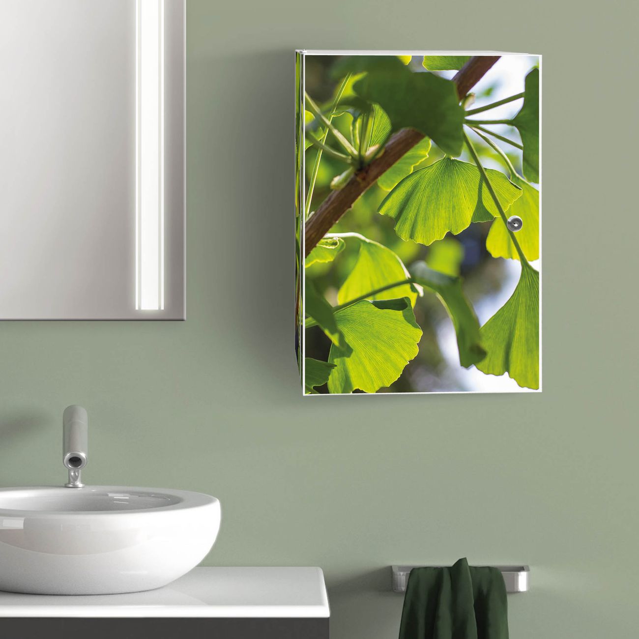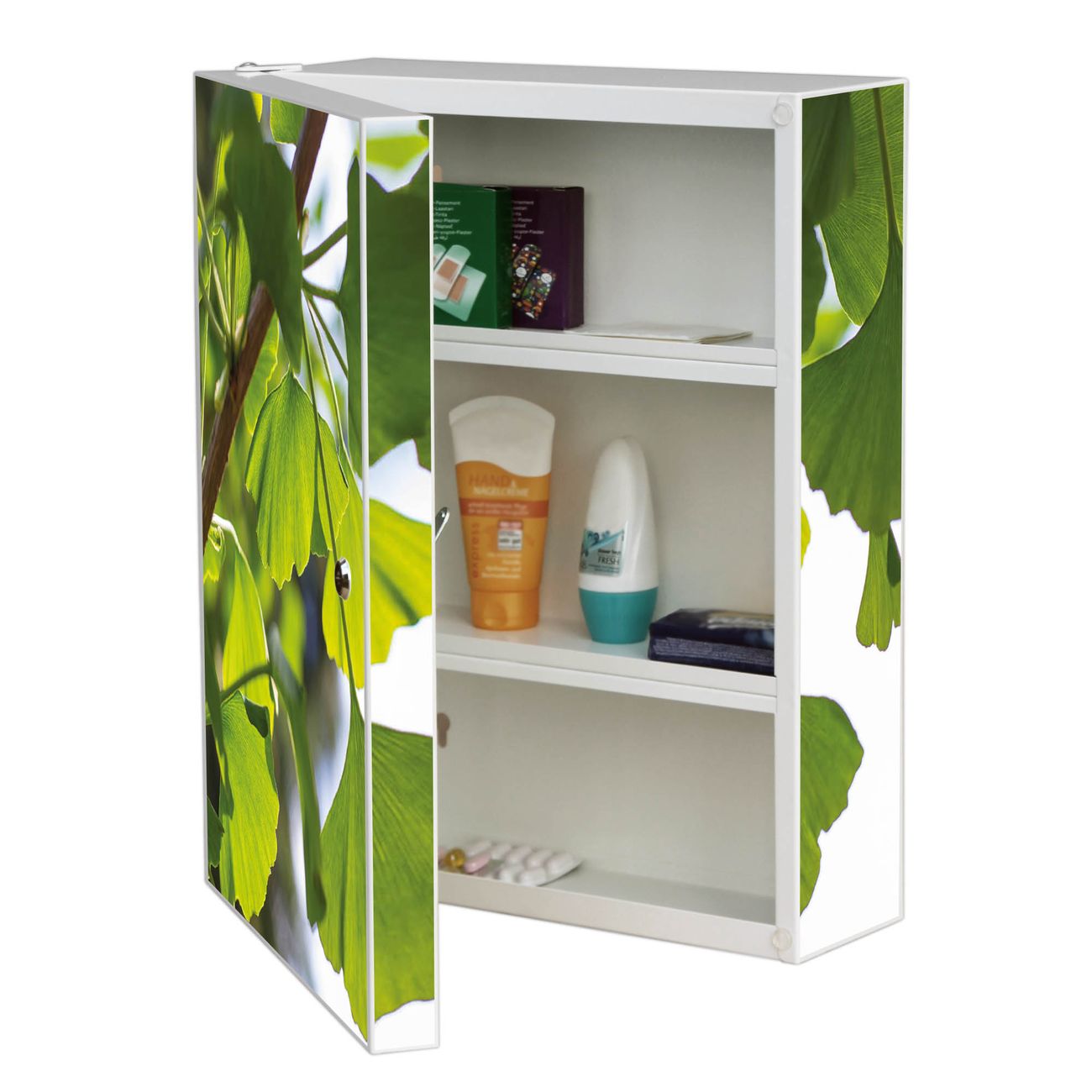 Medizinschrank Stahl Motiv Gingko