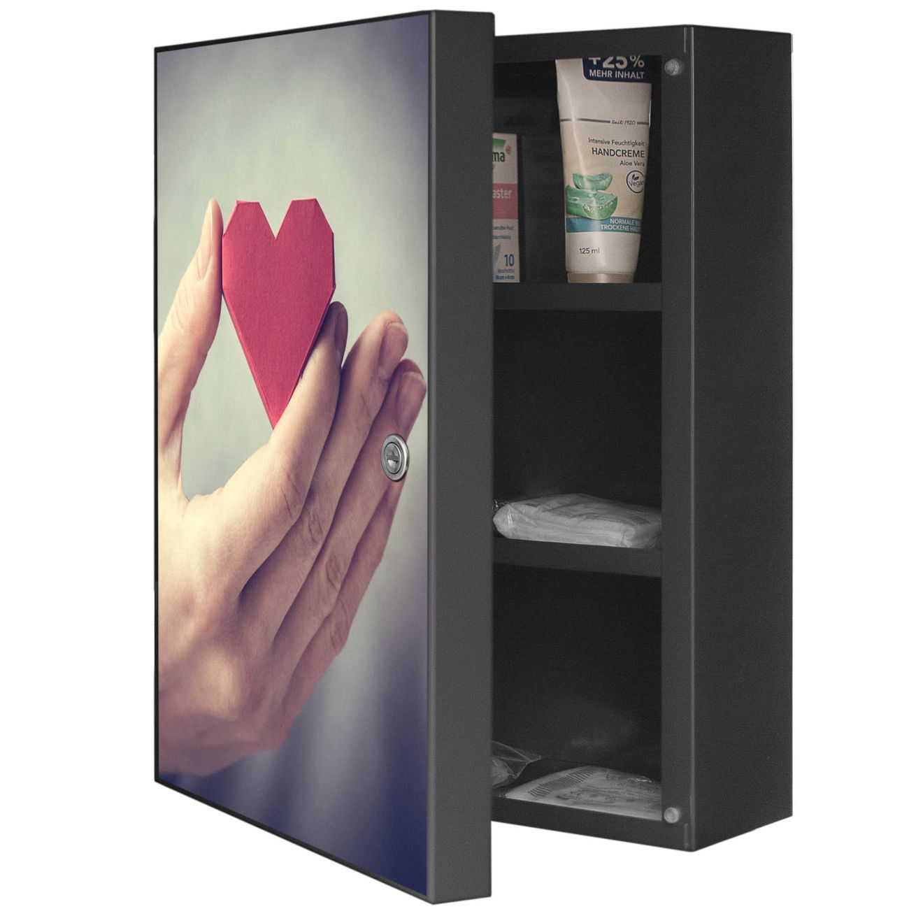 Medizinschrank Stahl Motiv Hand Aufs Herz