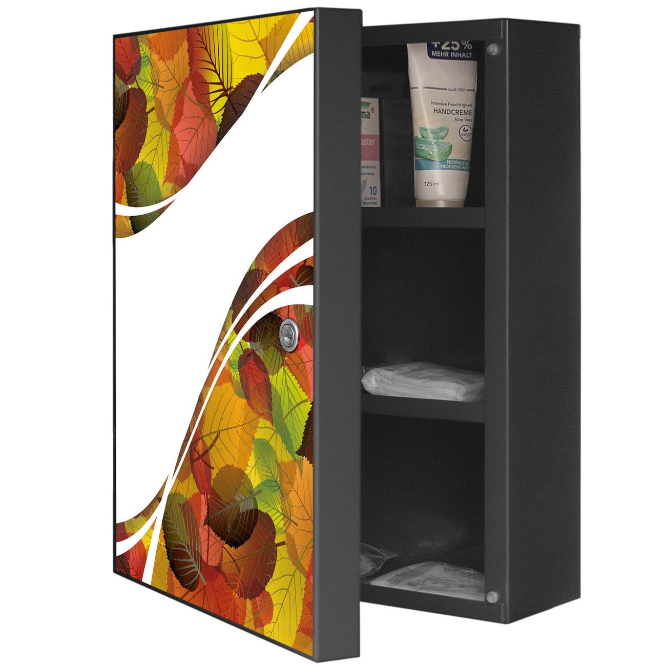Der Medizinschrank ist gesamt 35x46x15cm groß und wiegt ca. 3900g. Der Türanschlag ist links und kann nicht verändert werden, die Fronttür öffnet ca. 115°. Die Folierung befindet sich auf der Front. Das Gehäuse ist zeitlos anthrazit und aus Stahl gefertigt. Die innenliegenden Fächer haben verschiedene Größen für unterschiedliche Aufbewahrungsmöglichkeiten, in der Innentür können ebenfalls Dinge abgelegt werden. Befestigt wird der Medizinschrank an 4 Stellen auf der Rückseite, Sie erhalten 3 Schlüssel.