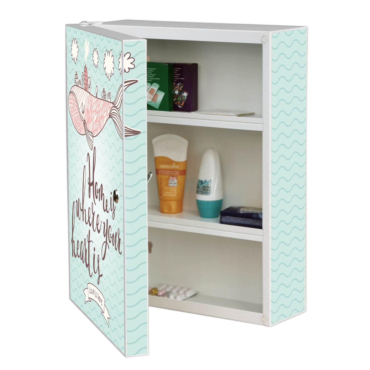 Medizinschrank Stahl Motiv Herzensangelegenheit