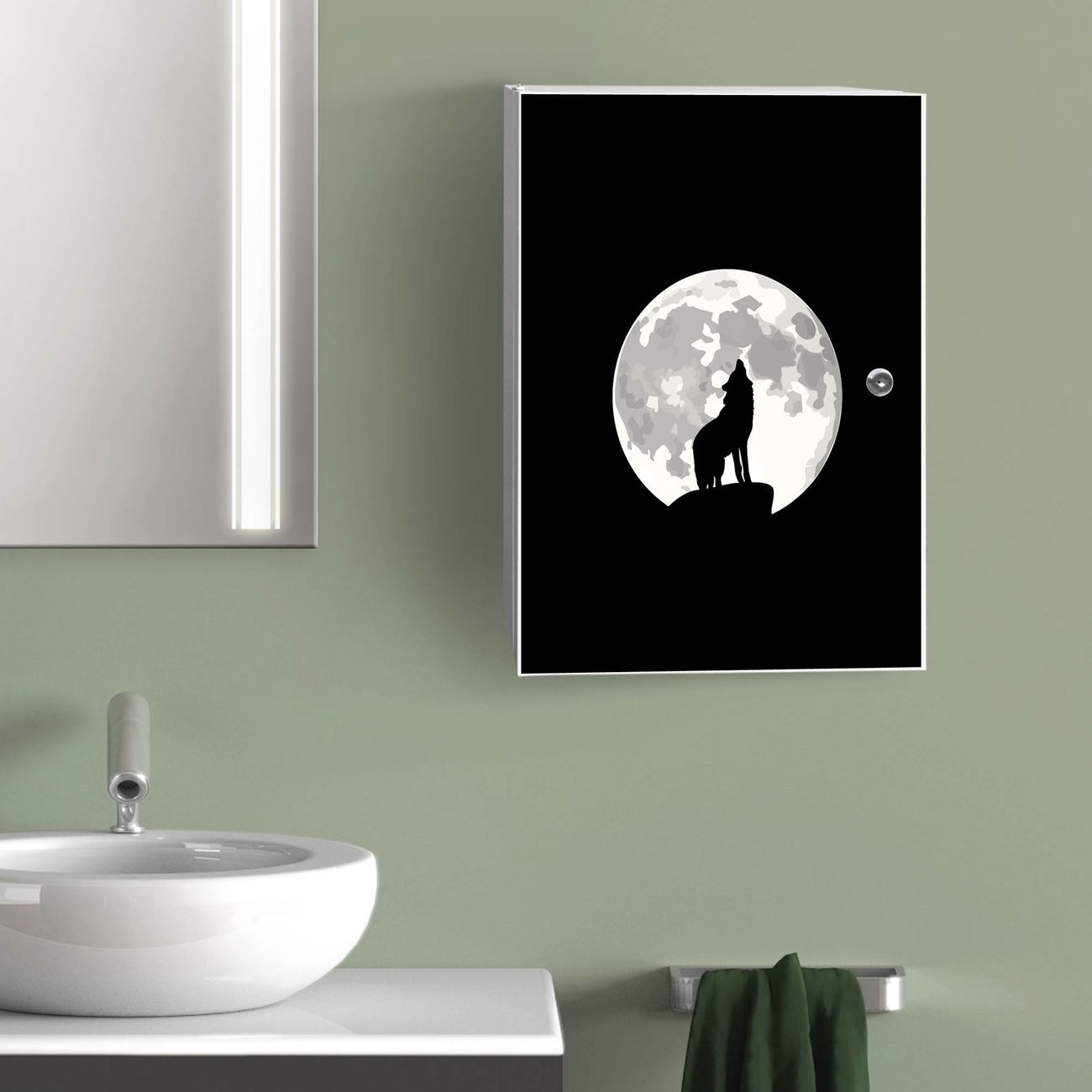 Medizinschrank Stahl Motiv Heulender Wolf SW