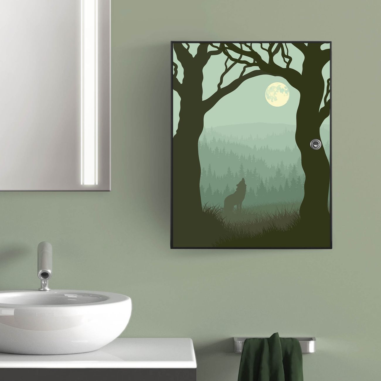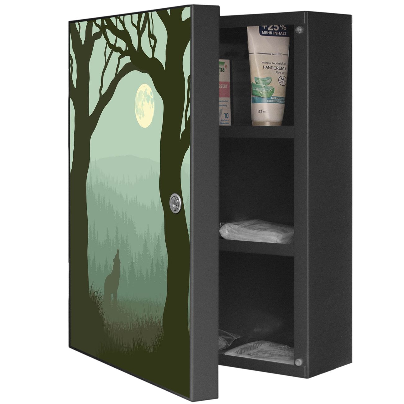 Medizinschrank Stahl Motiv Heulender Wolf