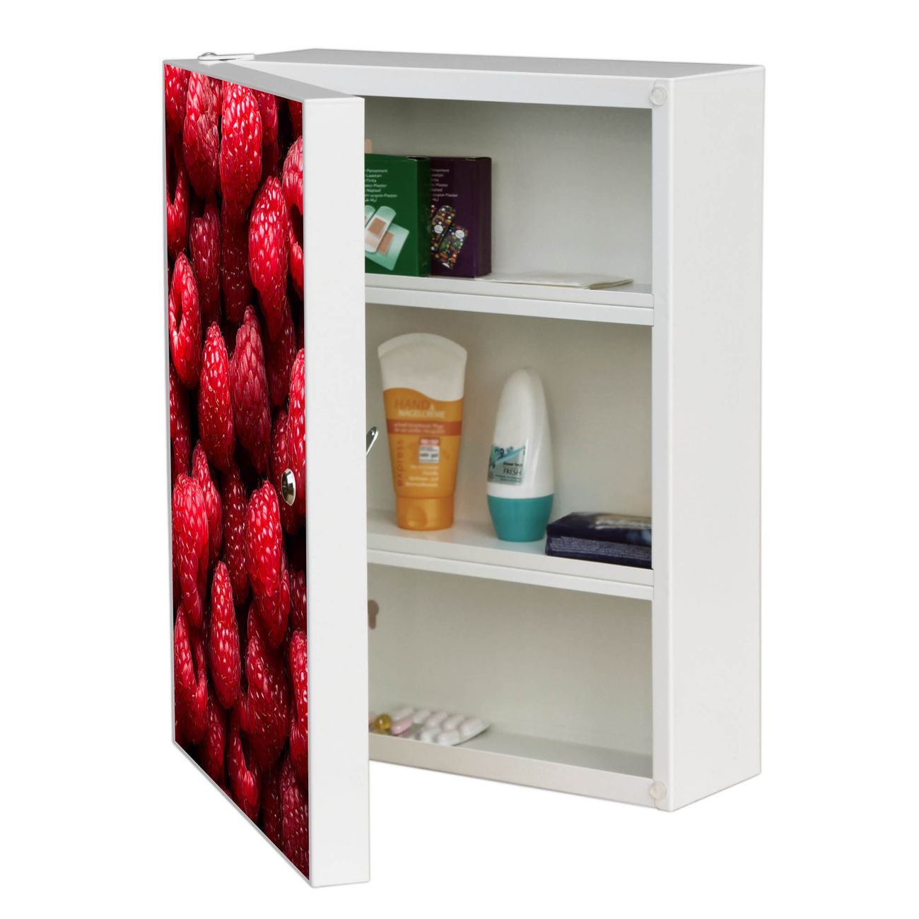 Medizinschrank Stahl Motiv Himbeeren